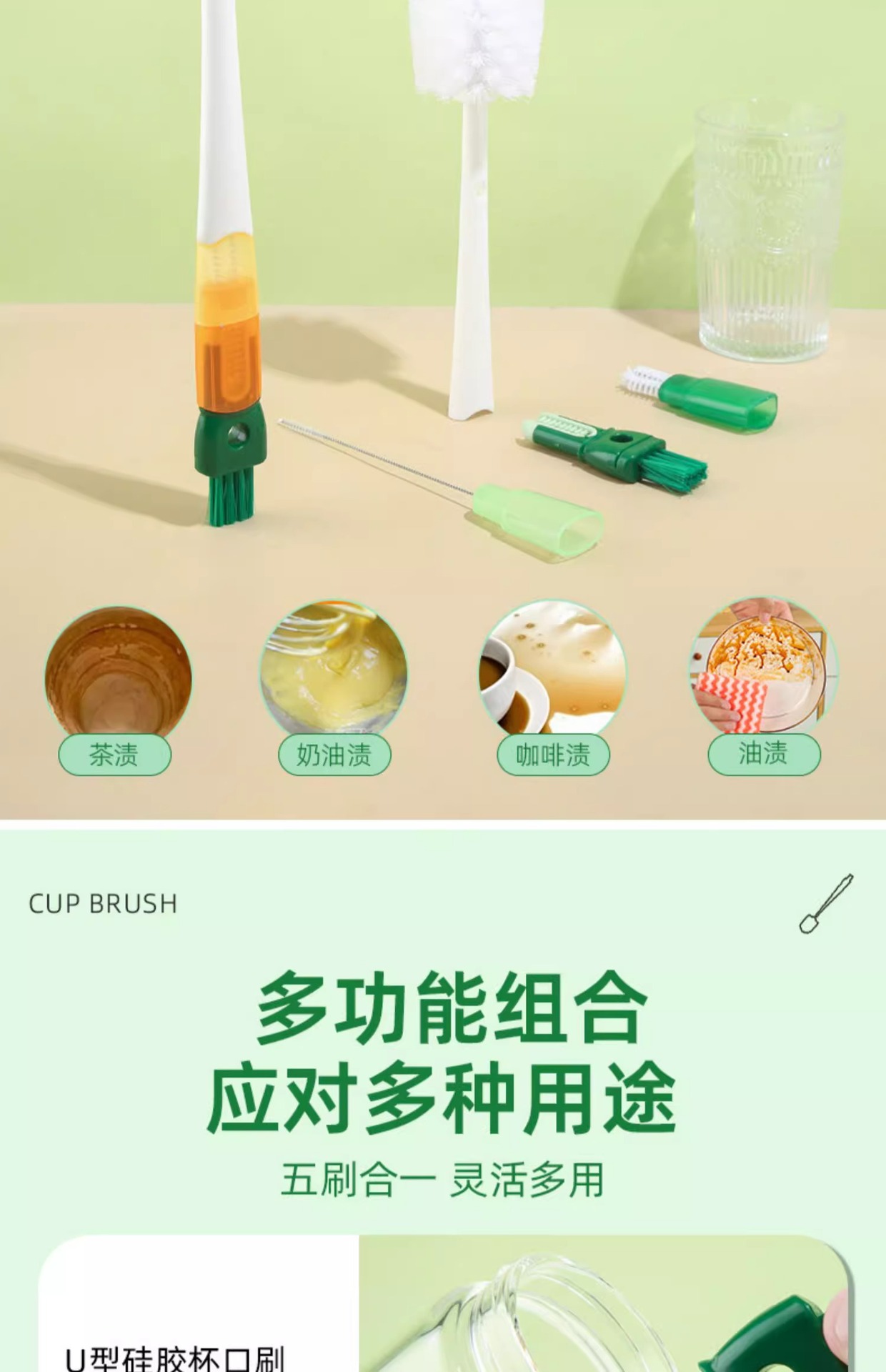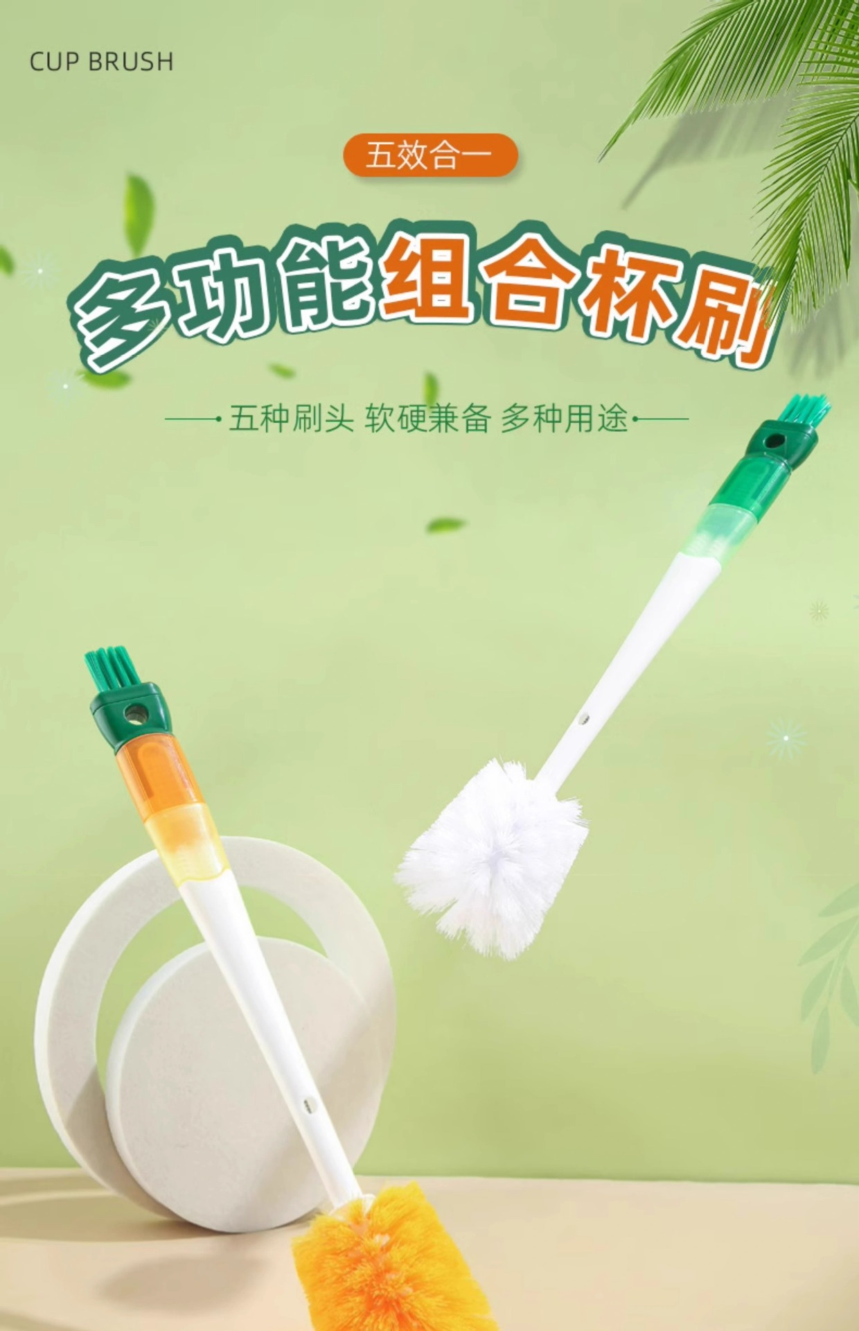 다기능 컵 브러시 5-in-1 컵 브러시 물컵 청소 병 보온병 컵 유물 컵 뚜껑 청소 브러시 청소 브러시스토어 가기