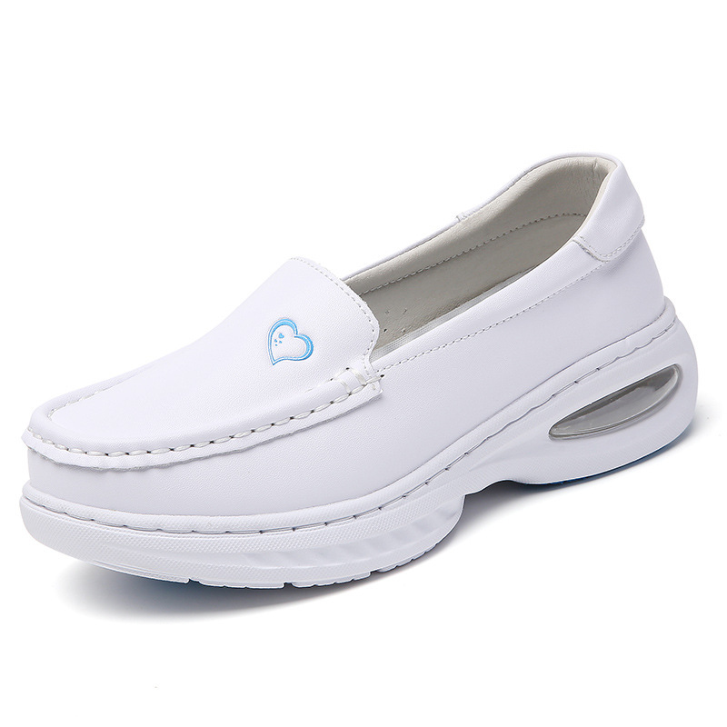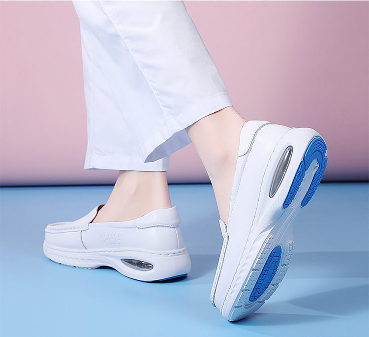 에어 쿠션 간호사 신발 여성 사계절 가죽 두꺼운 바닥 미끄럼 방지 평면 부드러운 바닥 통기성 작업 의료 신발 여성 머리카락 세대