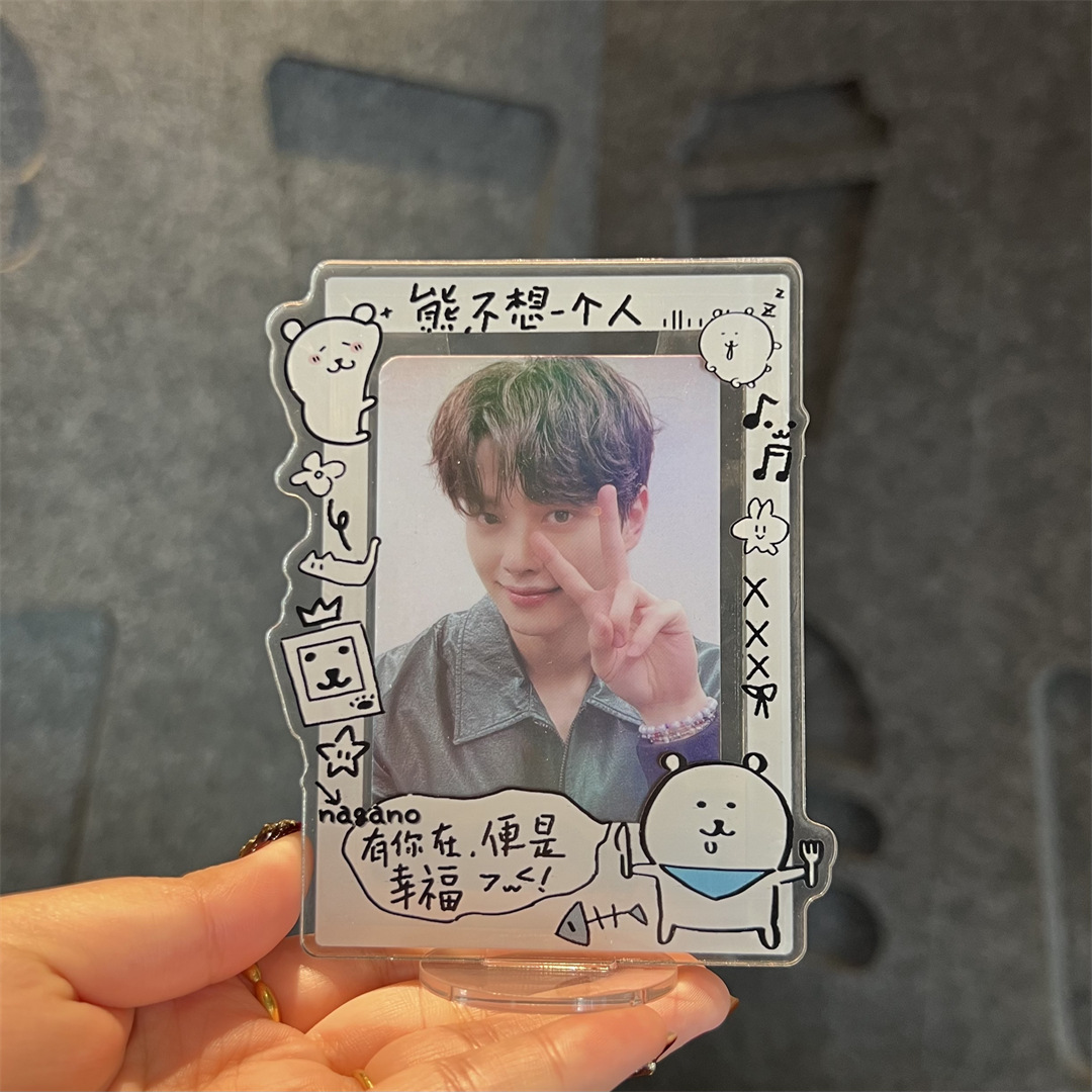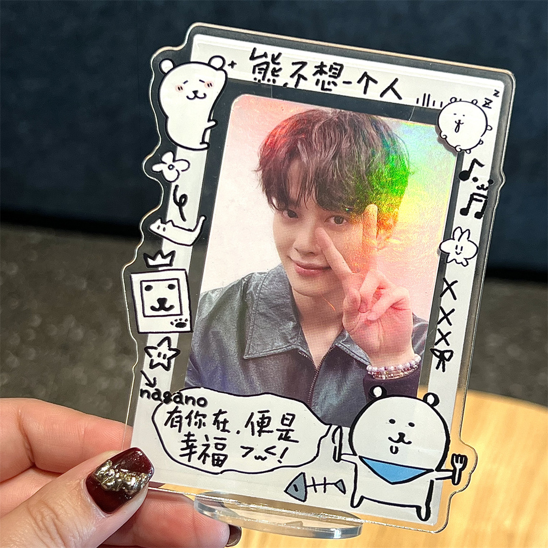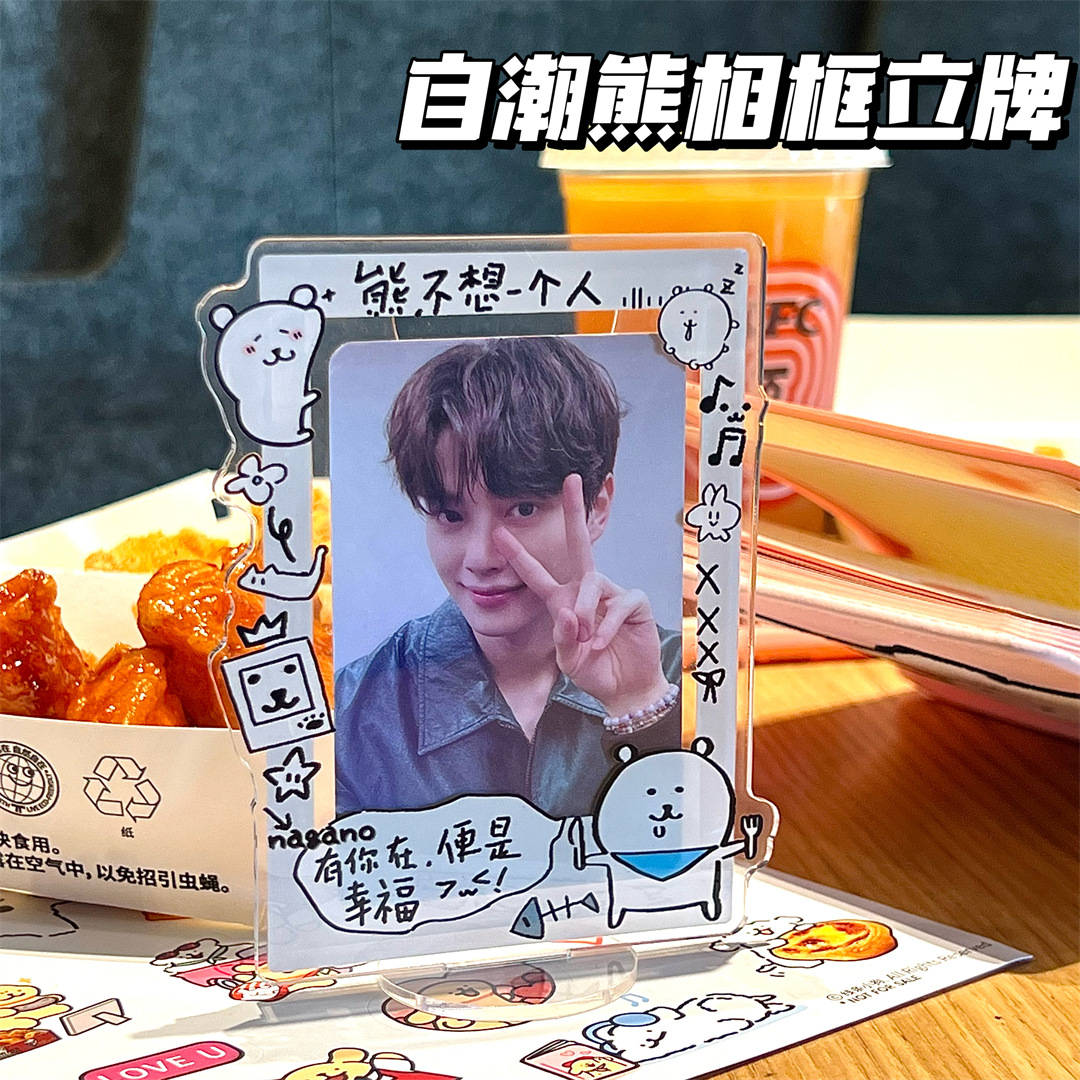 자기 비하 곰 아크릴 사진 프레임 카드 스탠드 귀여운 만화 3inch 사진 프레임 작은 카드 디스플레이 데스크탑 장식품 사용자 정의스토어 가기
