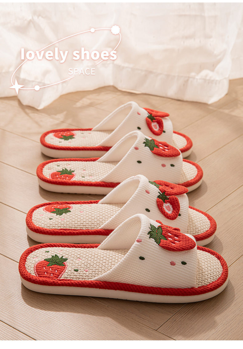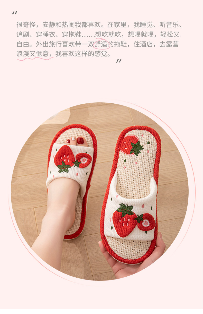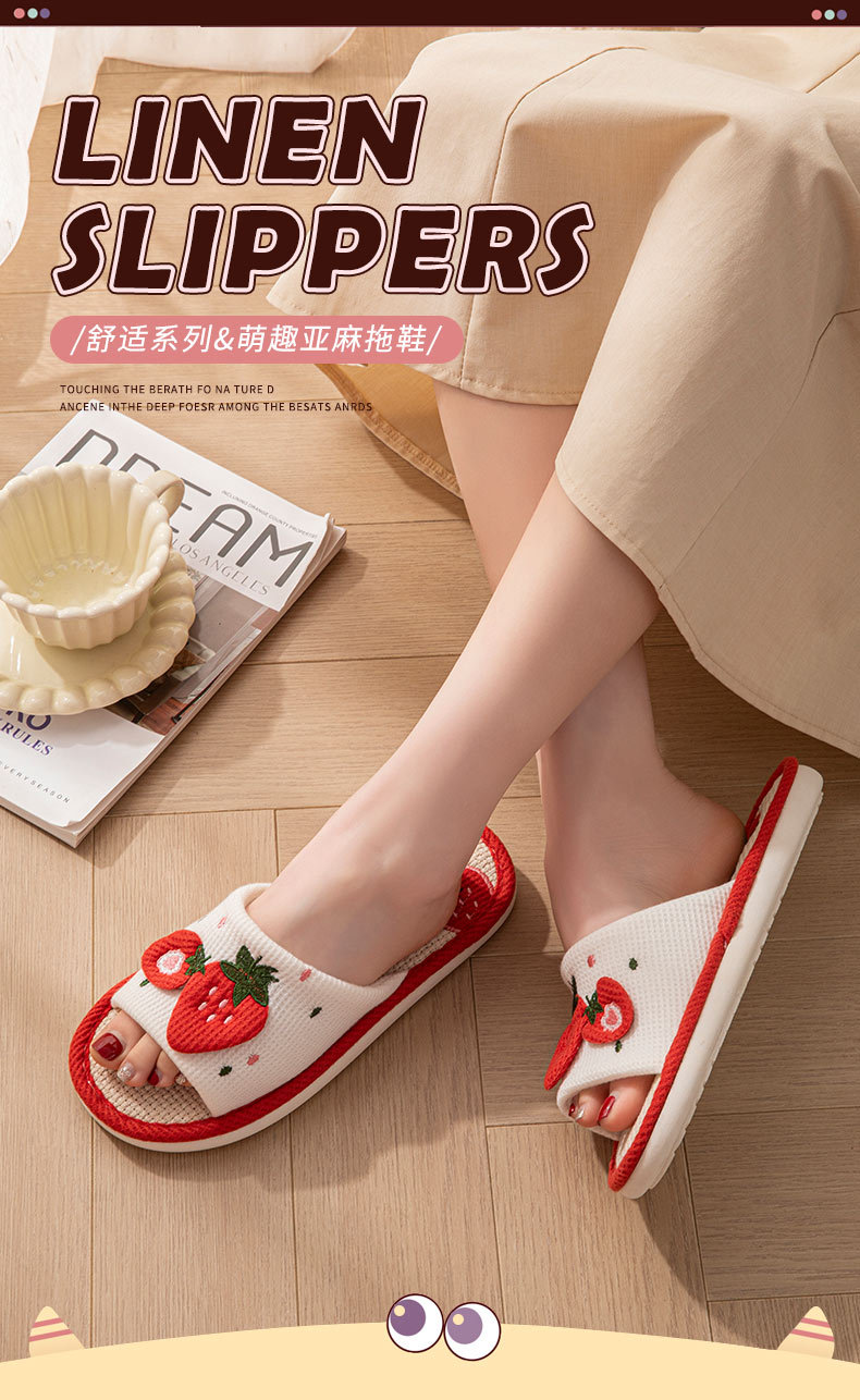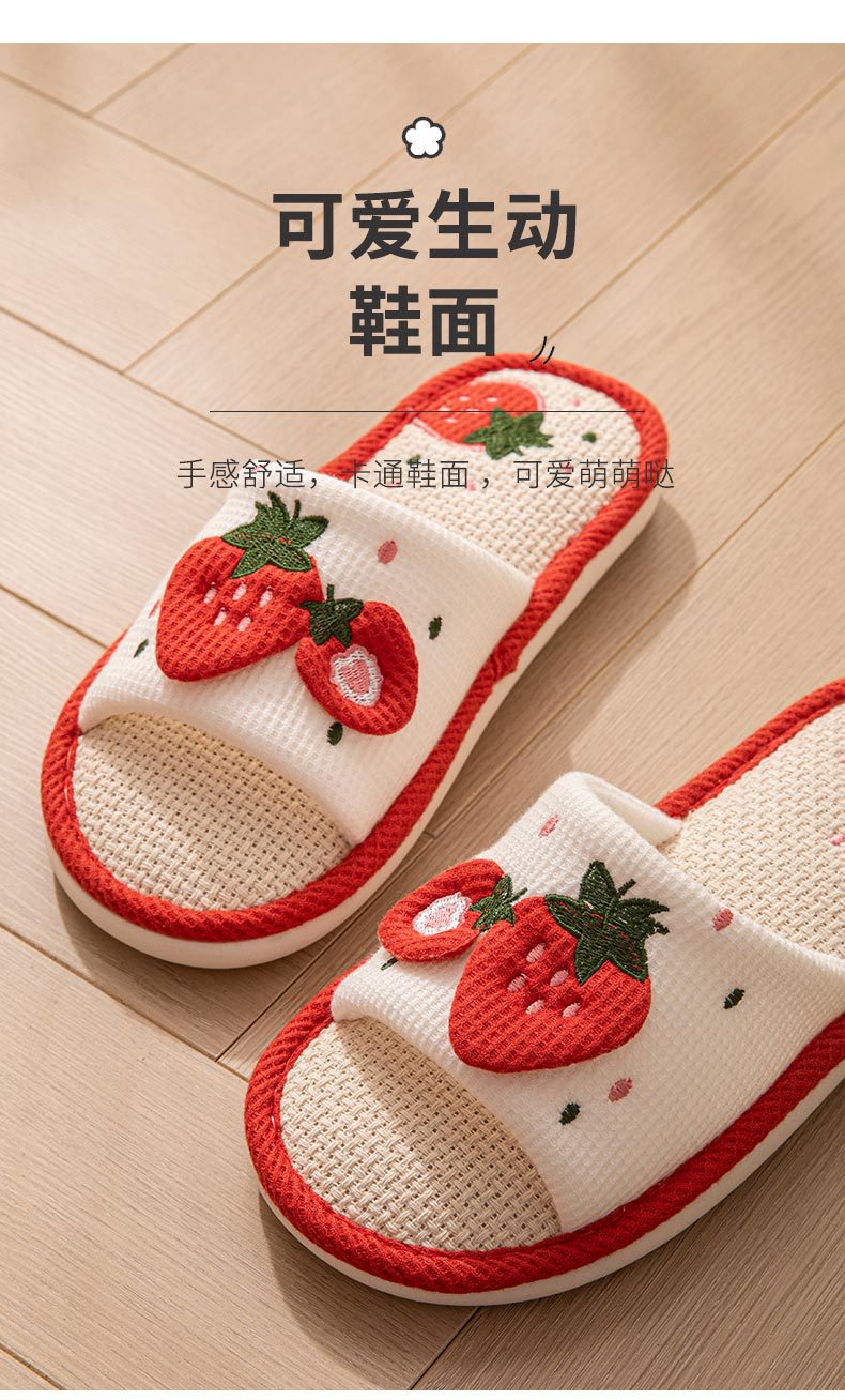 딸기 리넨 슬리퍼 여성의 봄과 가을 통기성 홈 비 슬립 땀 흡수 달콤한 부드러운 바닥 침묵 바닥 슬리퍼 여성 사계절스토어 가기