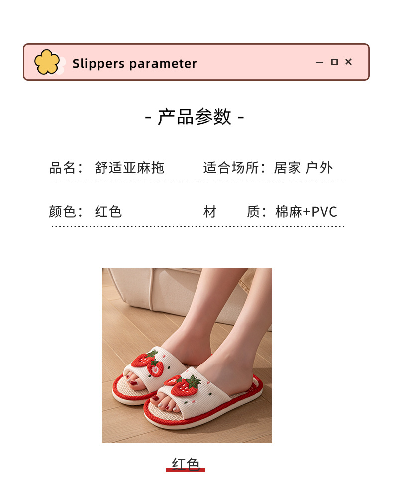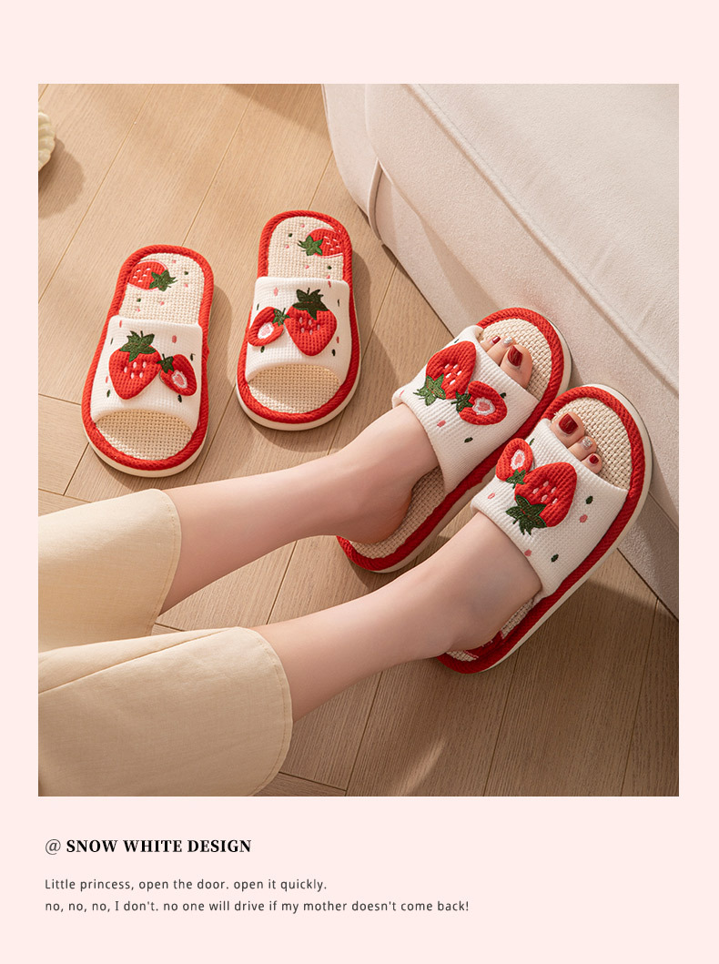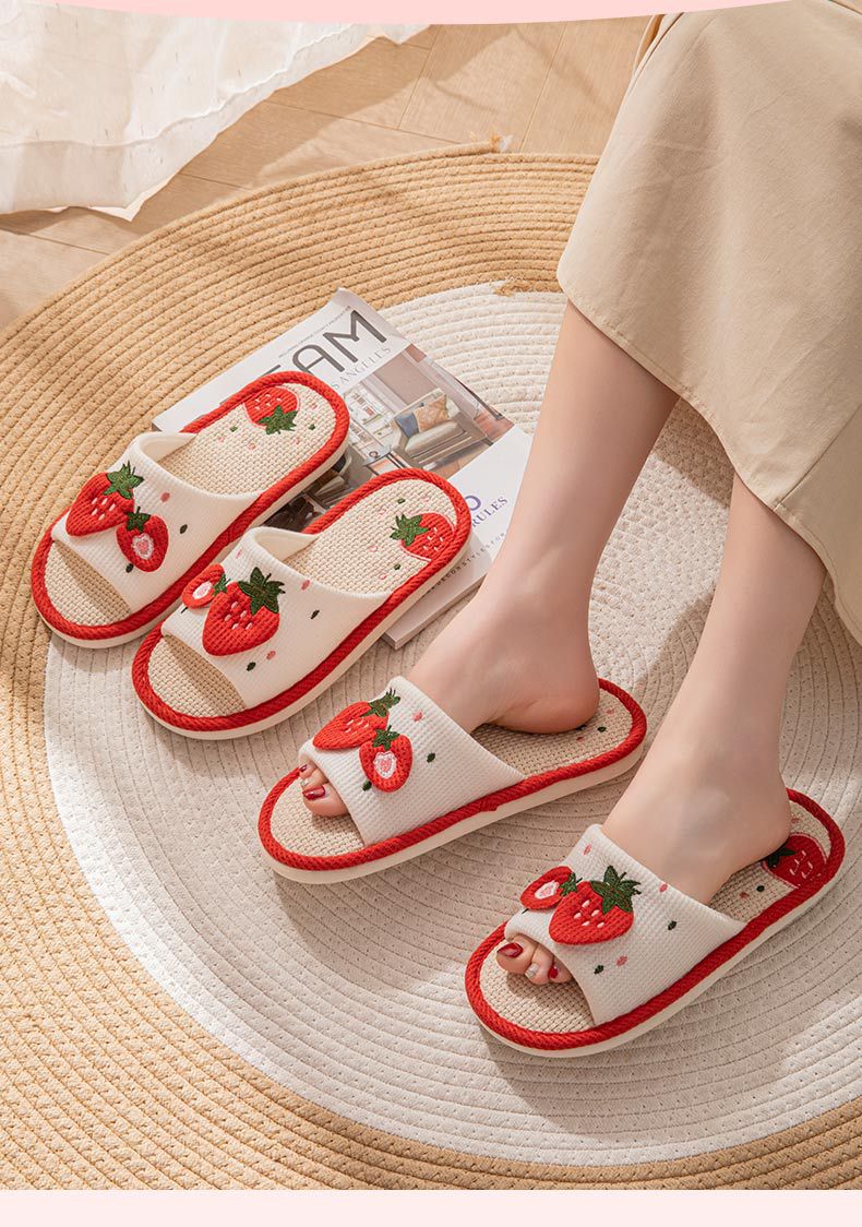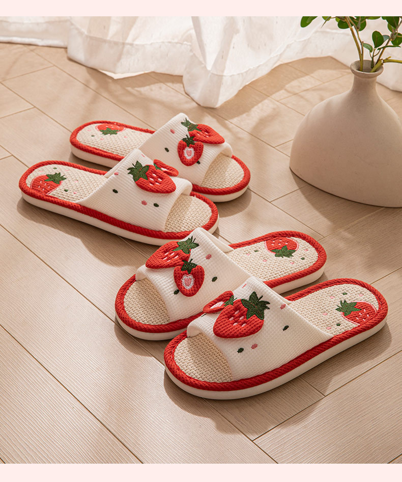 딸기 리넨 슬리퍼 여성의 봄과 가을 통기성 홈 비 슬립 땀 흡수 달콤한 부드러운 바닥 침묵 바닥 슬리퍼 여성 사계절스토어 가기