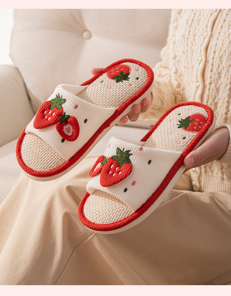 딸기 리넨 슬리퍼 여성의 봄과 가을 통기성 홈 비 슬립 땀 흡수 달콤한 부드러운 바닥 침묵 바닥 슬리퍼 여성 사계절