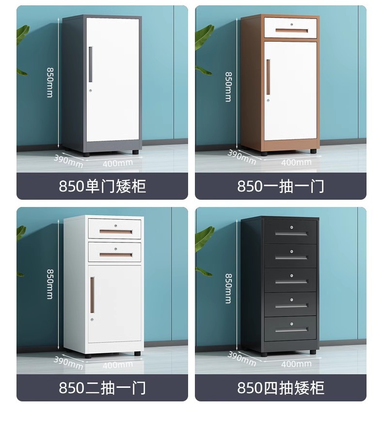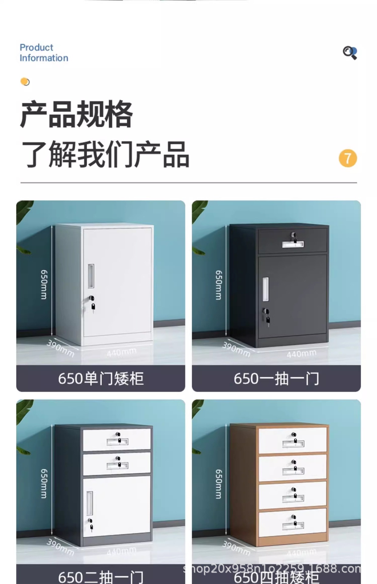 办公室桌下文件矮柜资料柜带锁储物柜多抽屉档案柜桌边柜落地矮柜