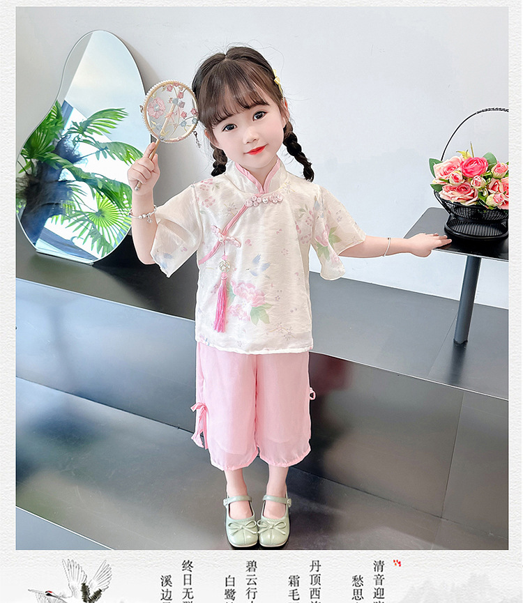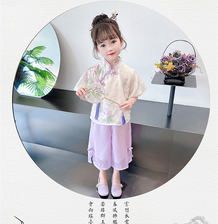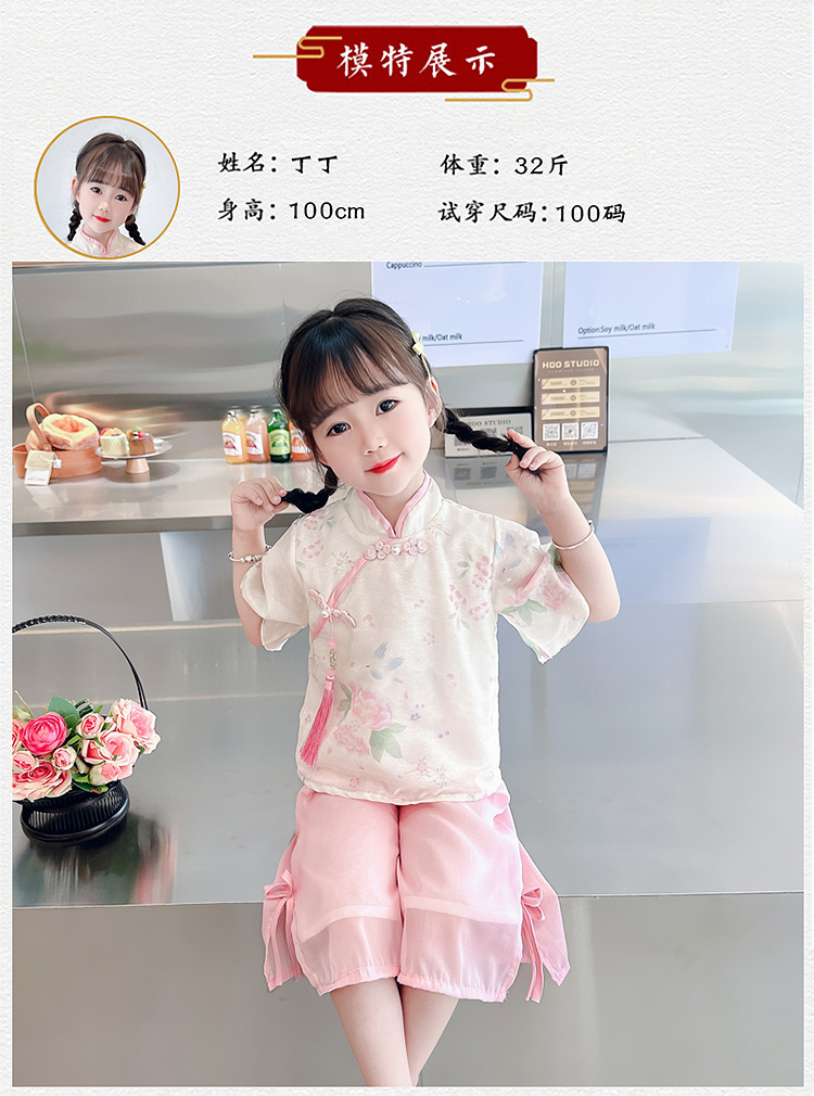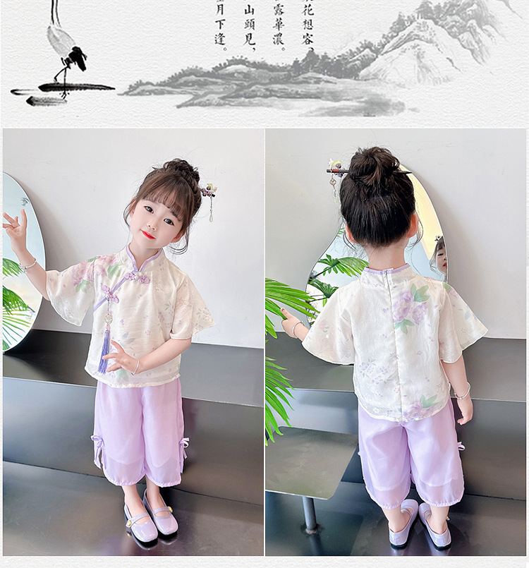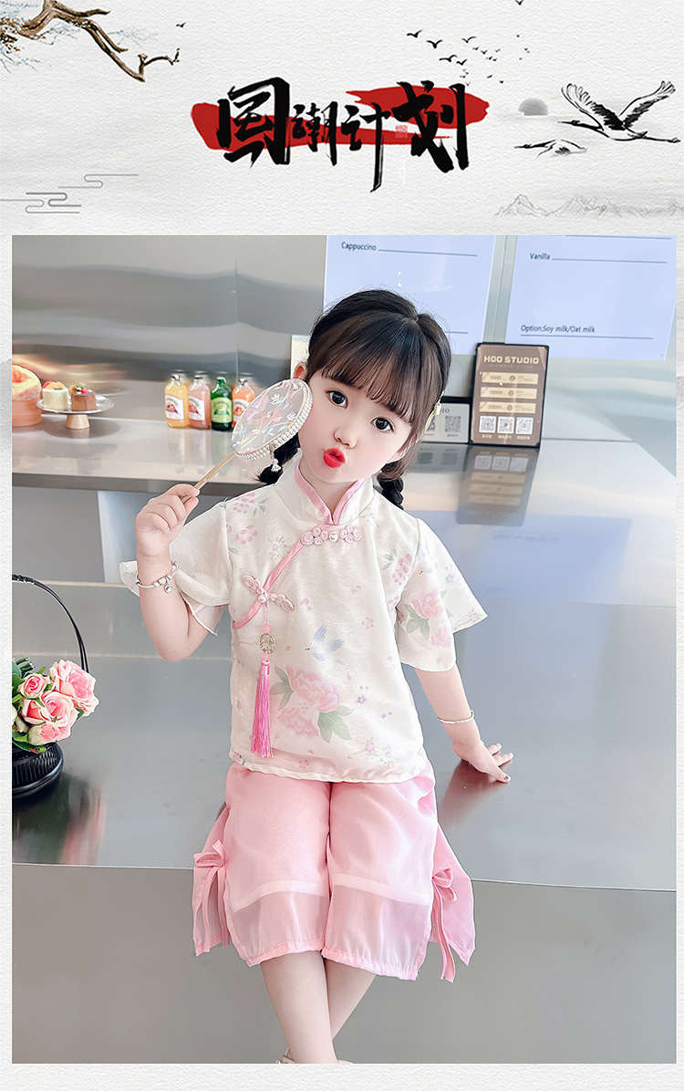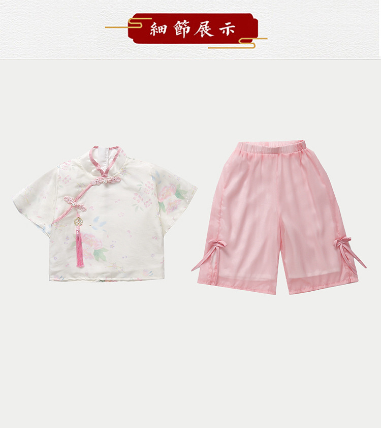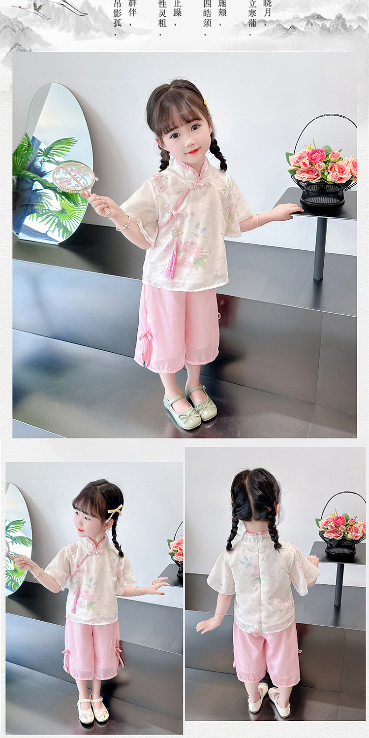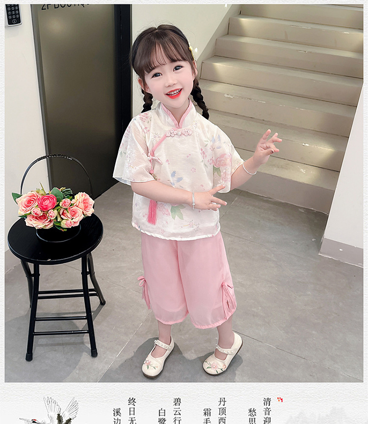 소녀의 새로운 중국 당나라 세트 세트 2025 새로운 여름 서양 스타일 아기 소녀의 국가 스타일 슈퍼 요정 투피스 세트스토어 가기