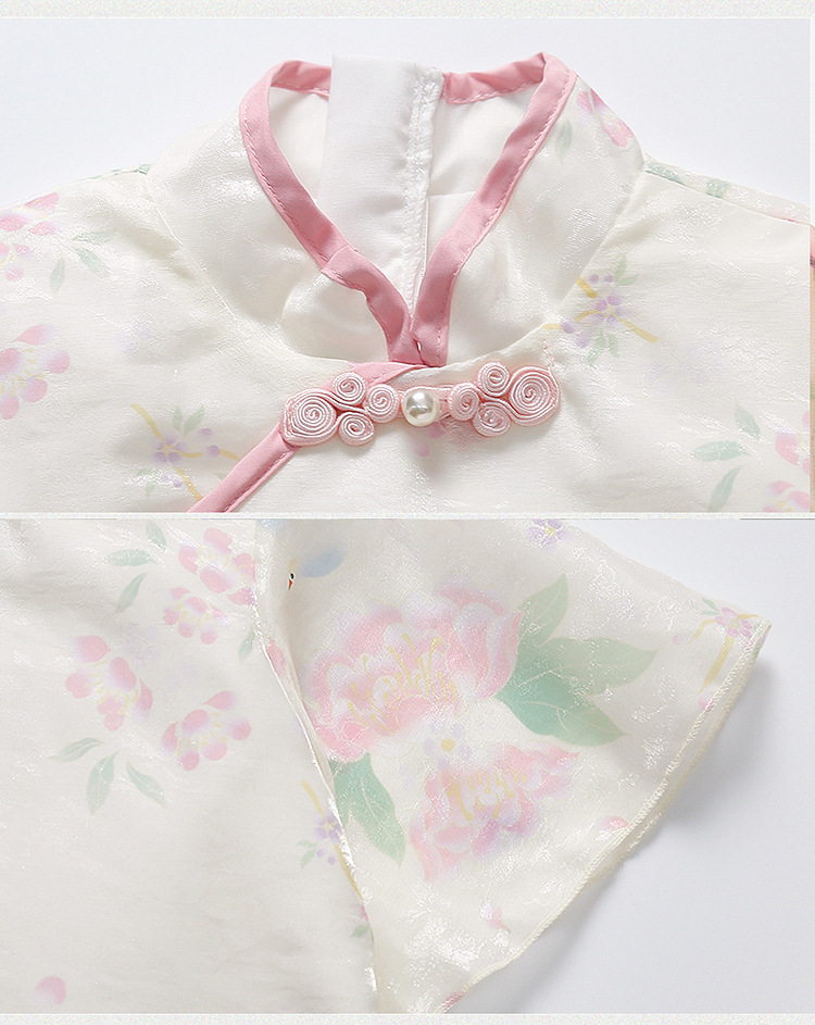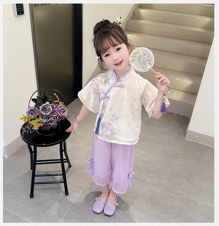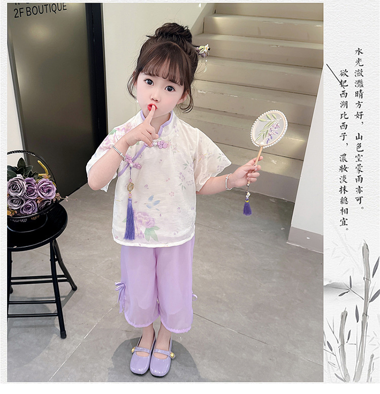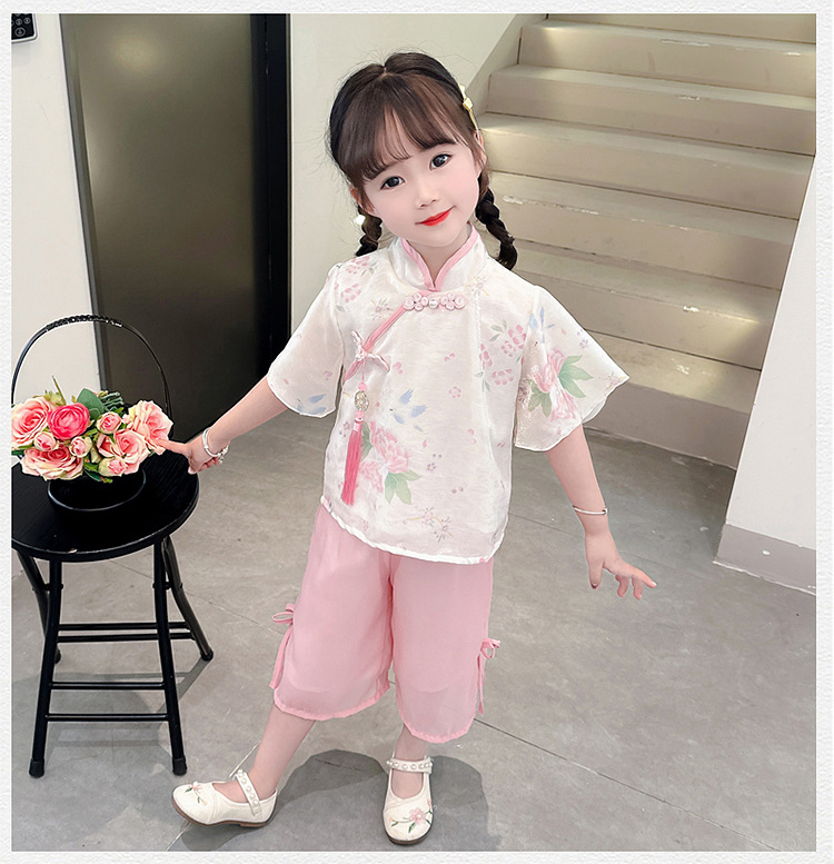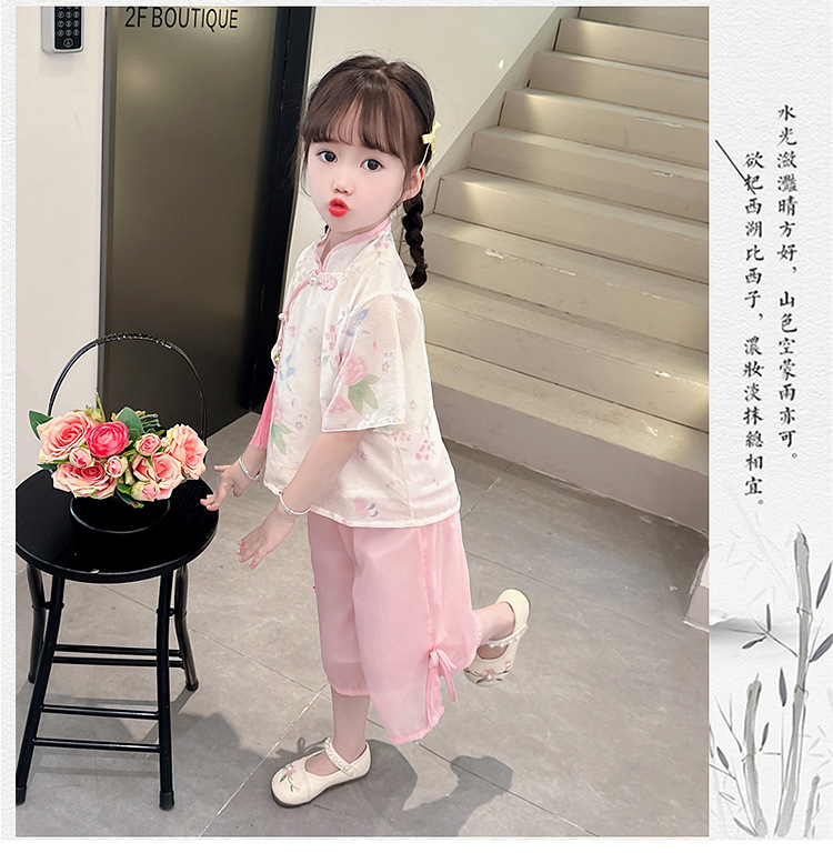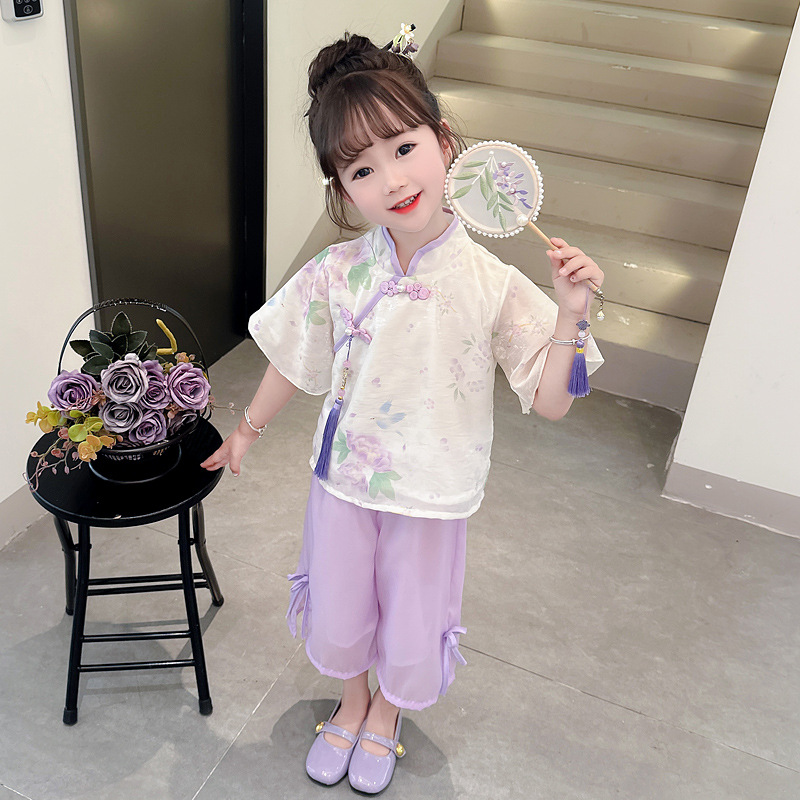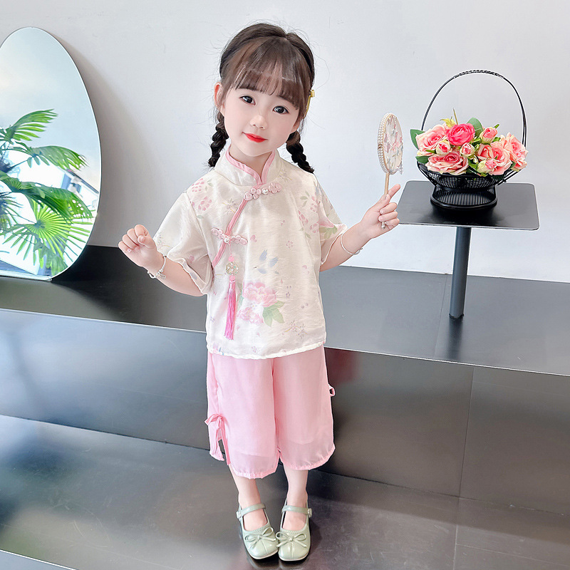 소녀의 새로운 중국 당나라 세트 세트 2025 새로운 여름 서양 스타일 아기 소녀의 국가 스타일 슈퍼 요정 투피스 세트
