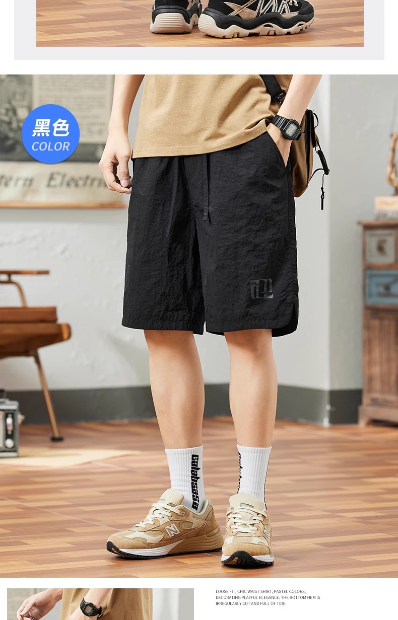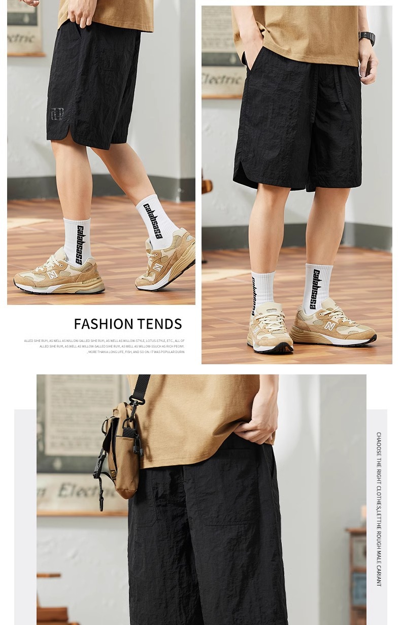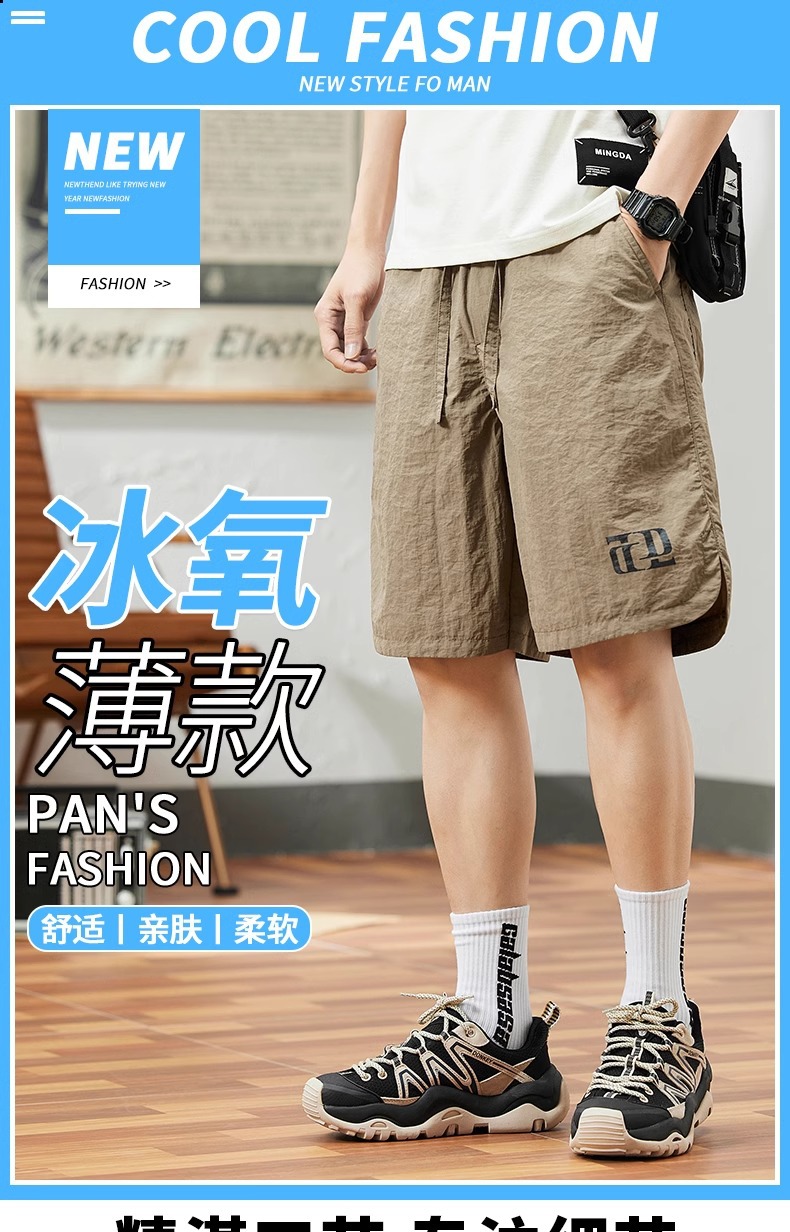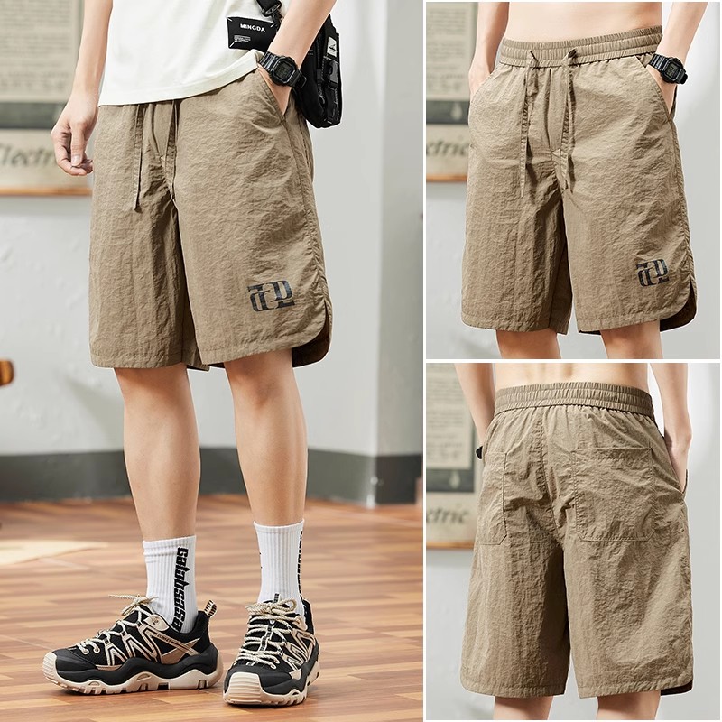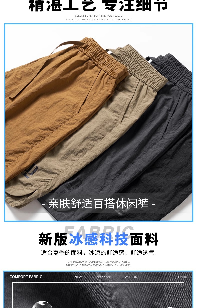 아이스 실크 캐주얼 반바지 남자 여름 얇은 남자의 느슨한 빠른 건조 스포츠 유행 미국 스타일 작업복 바지 중간 길이 바지