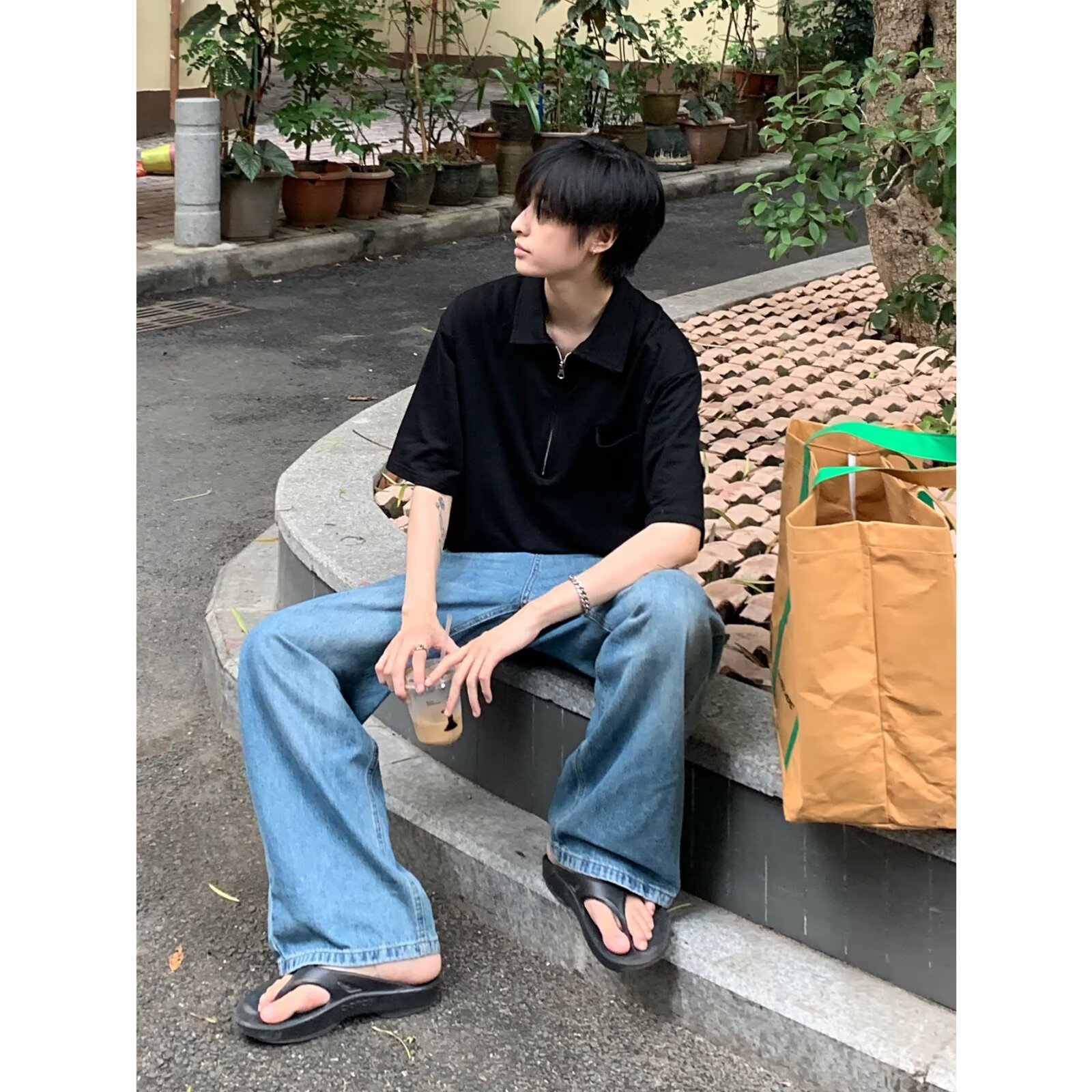 하프 지퍼 폴로 셔츠 반팔 남자 2025 년 여름 새로운 유행 일본 툴링 느슨한 반소매 티셔츠 트렌디스토어 가기