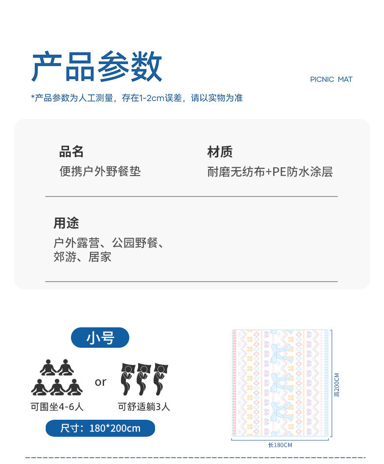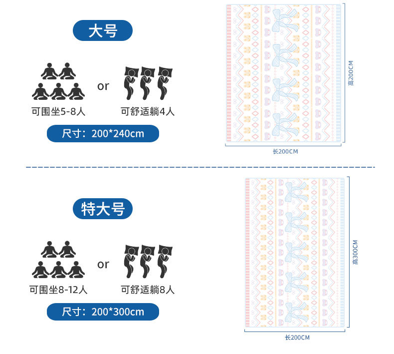 피크닉 매트 야외 휴대용 바닥 매트 접이식 습기 방지 매트 비치 매트, 바람 부모-자식 두꺼운 잔디 캠핑 매트