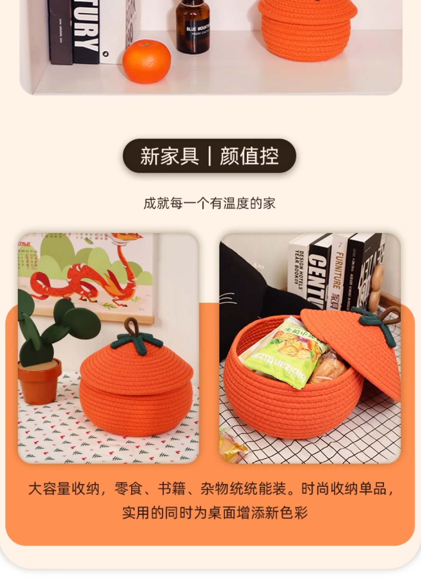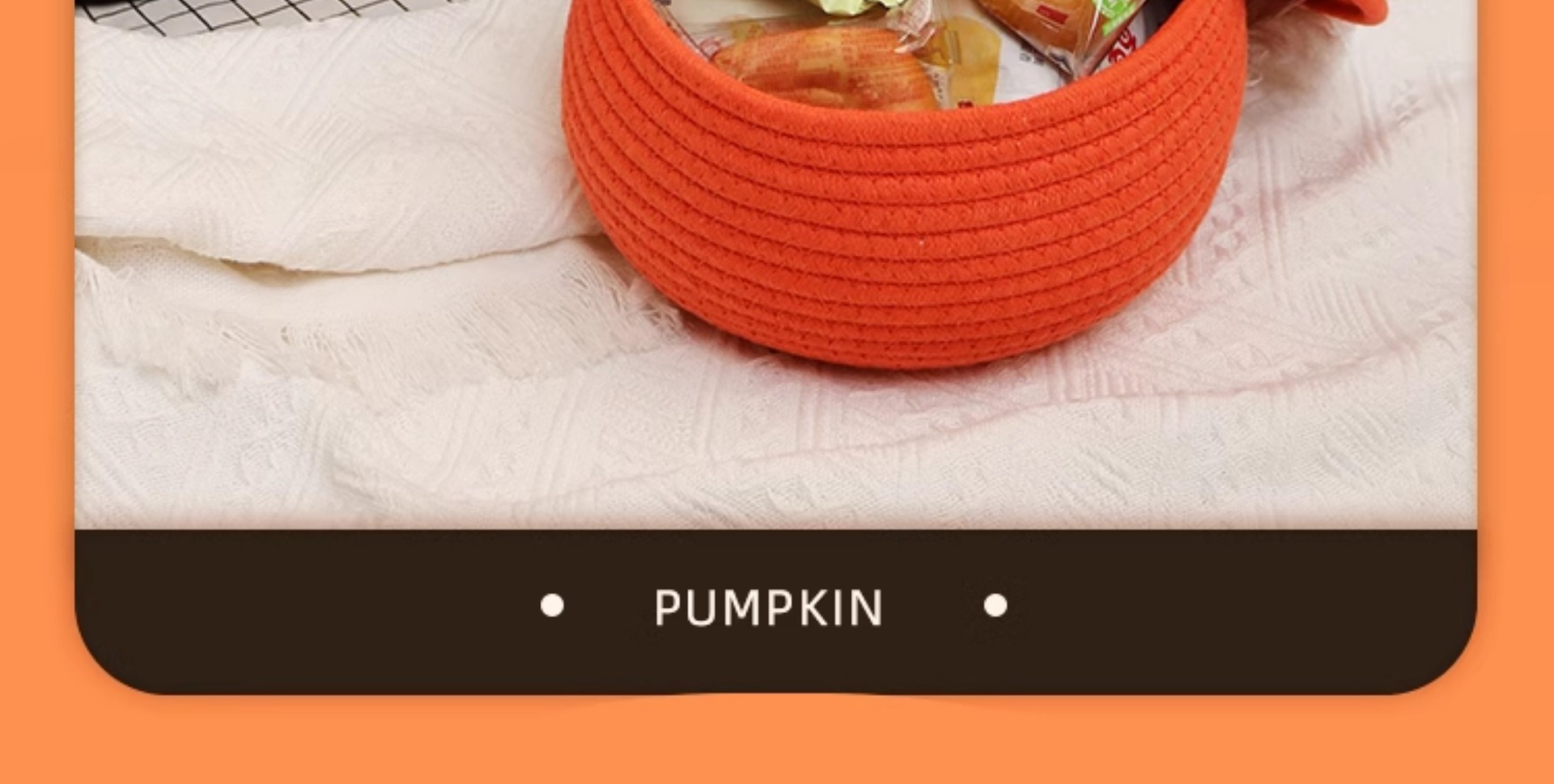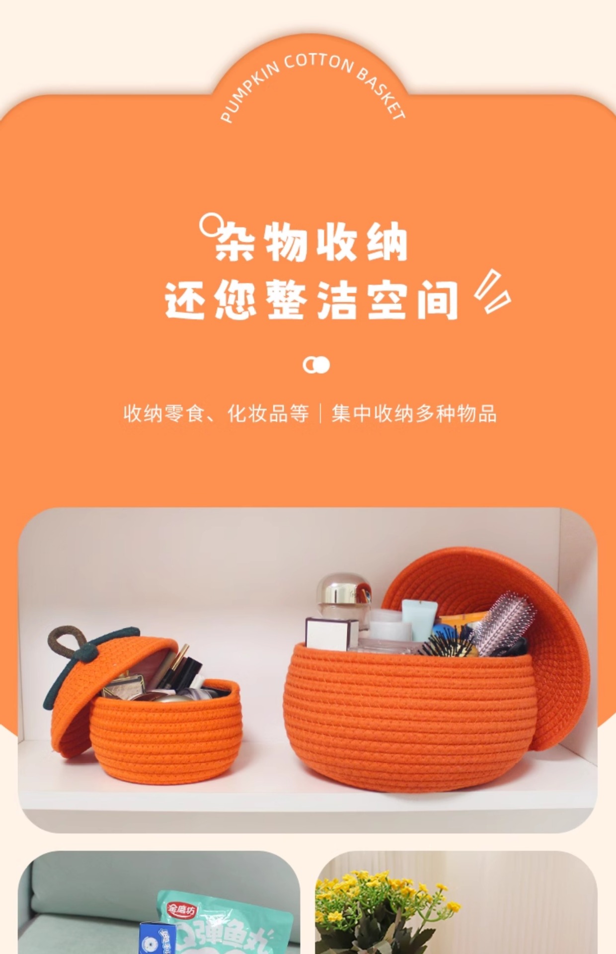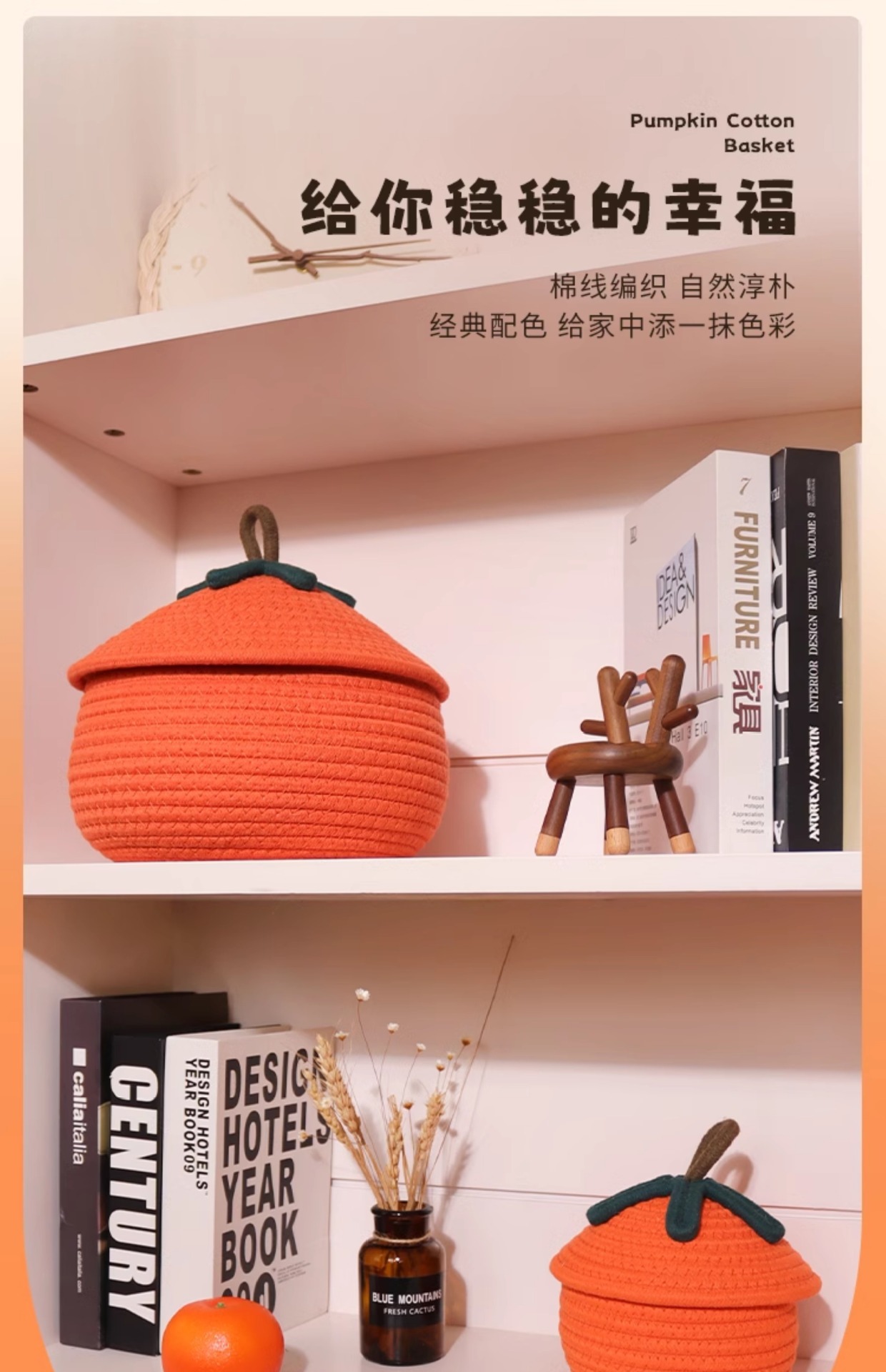데스크탑 면실 수납바구니, 화장품 및 장난감 정리함, 잡화 및 간식 수납함, 뚜껑이 있는 침대 옆 호박 뜨개질 바구니스토어 가기