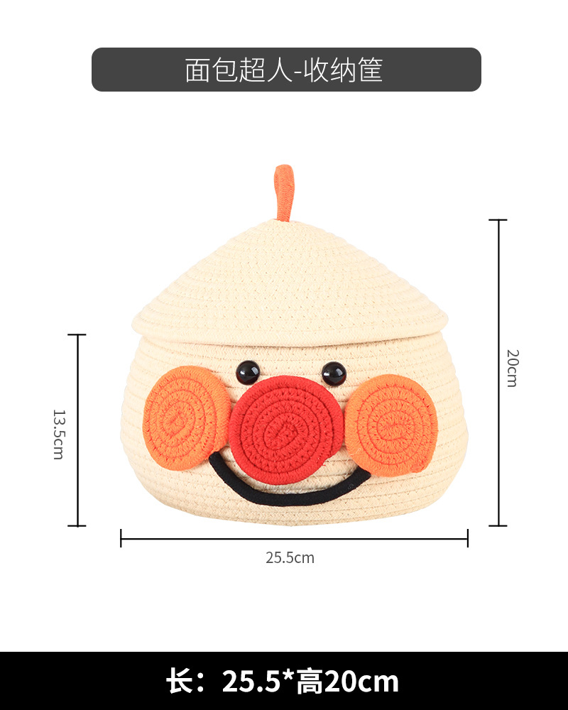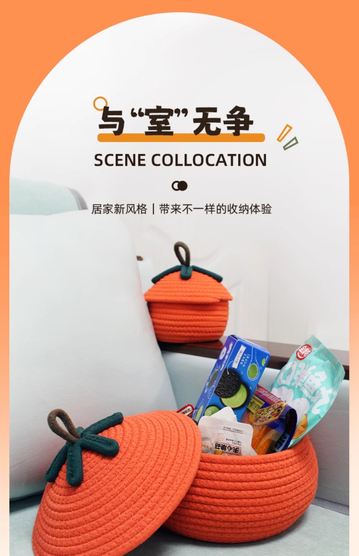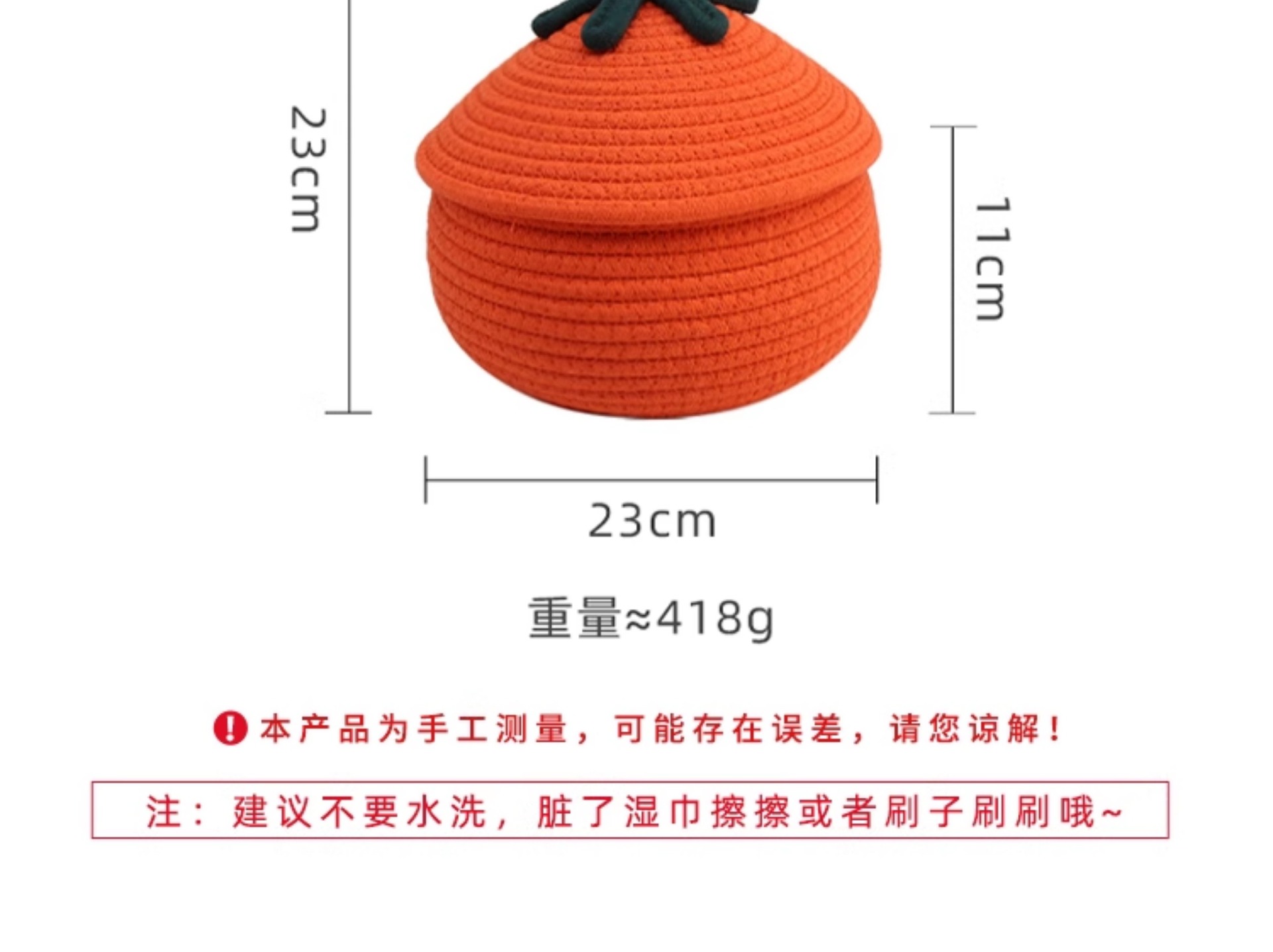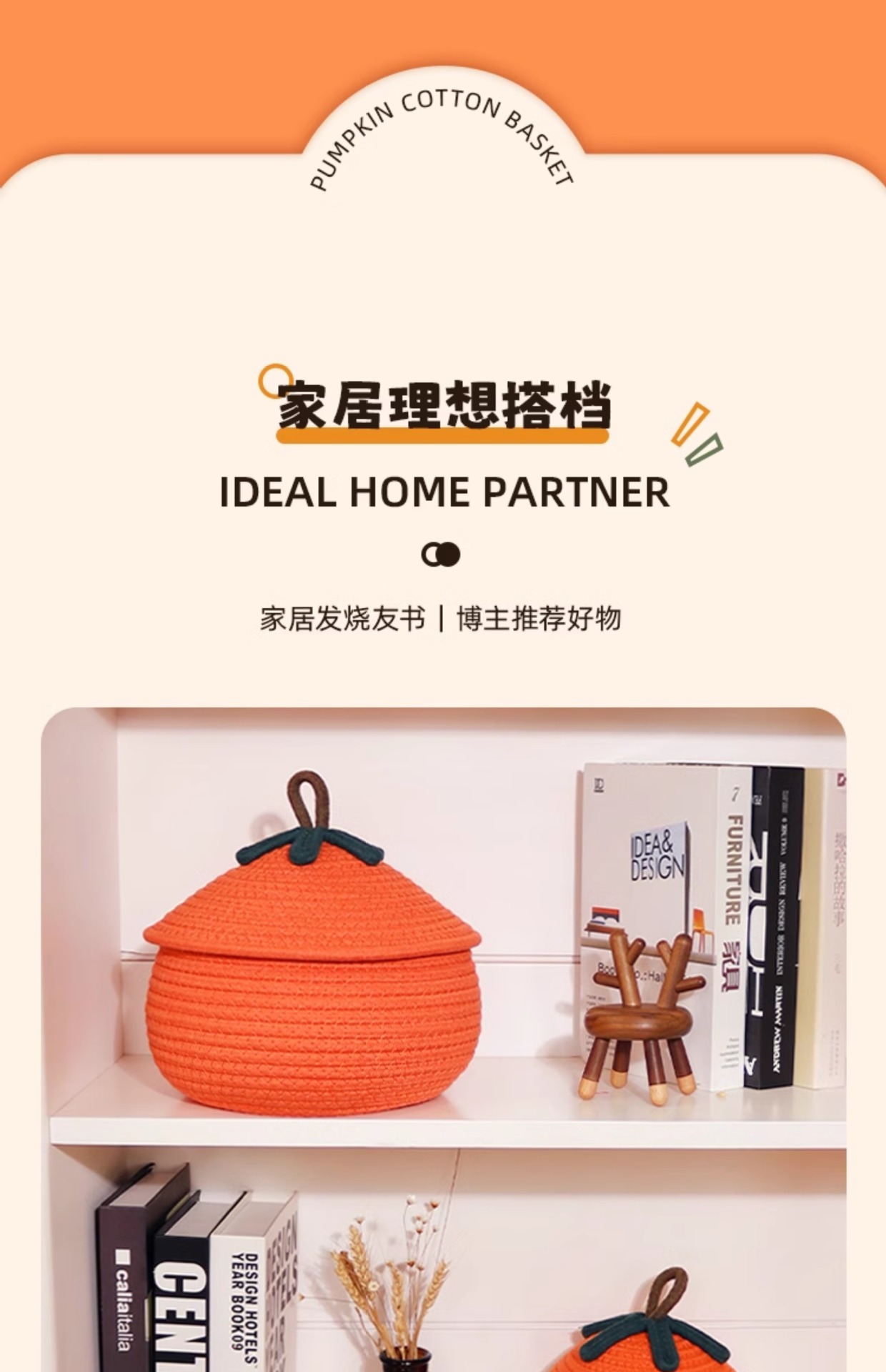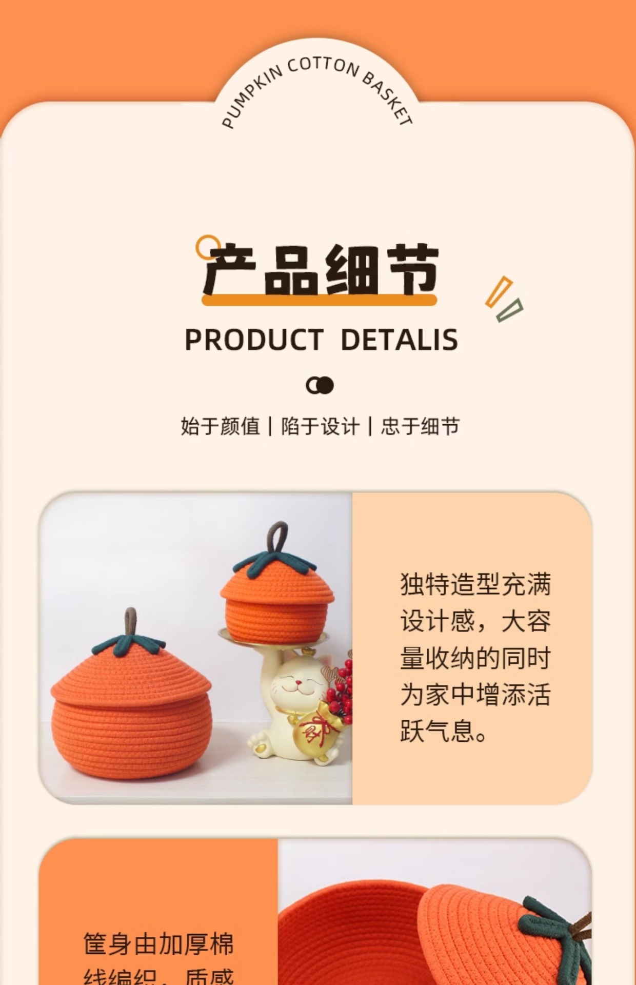 데스크탑 면실 수납바구니, 화장품 및 장난감 정리함, 잡화 및 간식 수납함, 뚜껑이 있는 침대 옆 호박 뜨개질 바구니스토어 가기