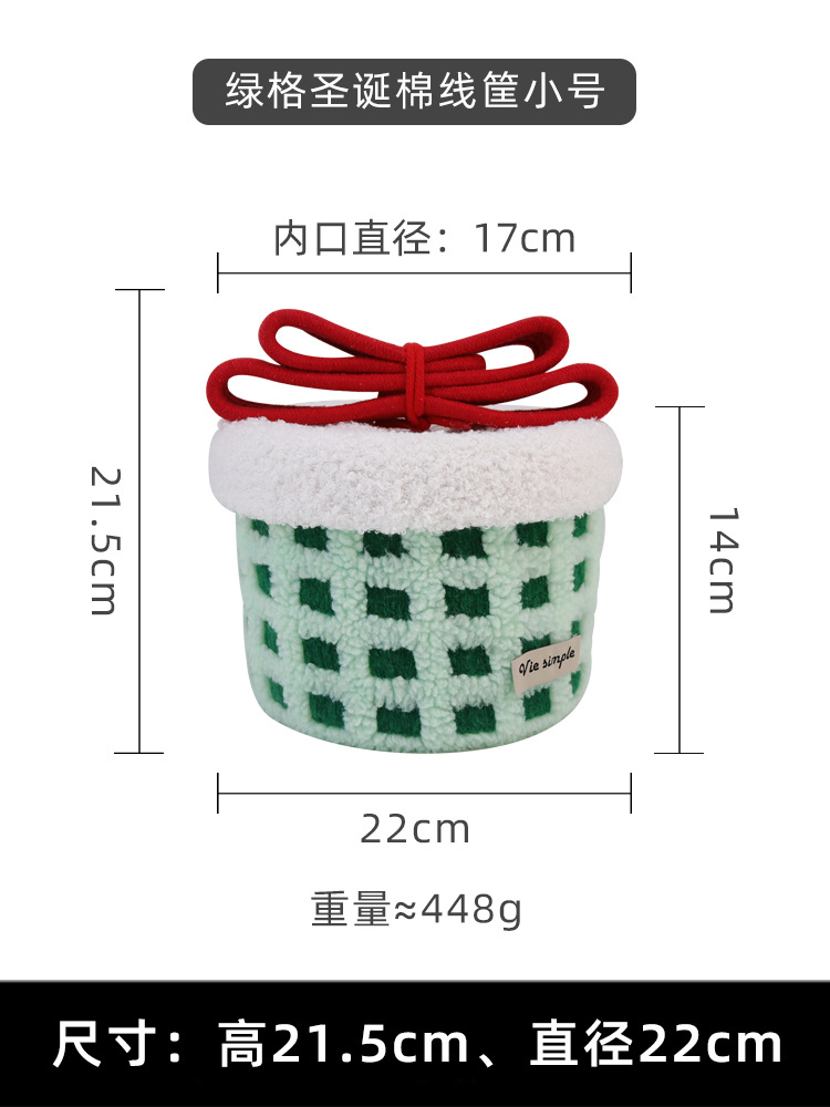 • 녹색 격자 무늬 크리스마스 선물 상자 면사 바구니 소형