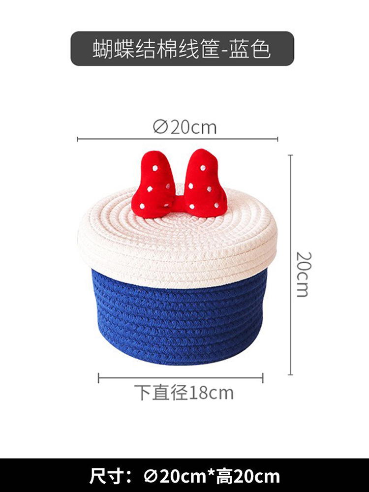 • 파란색 배경과 베이지색 실이 있는 면 바구니
