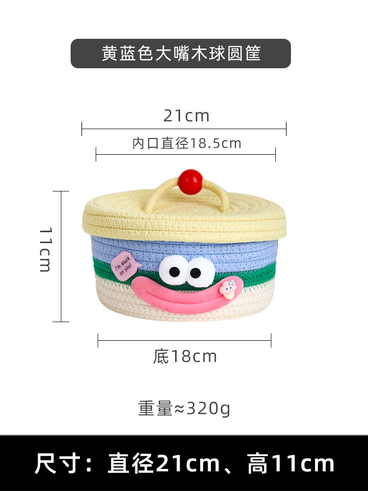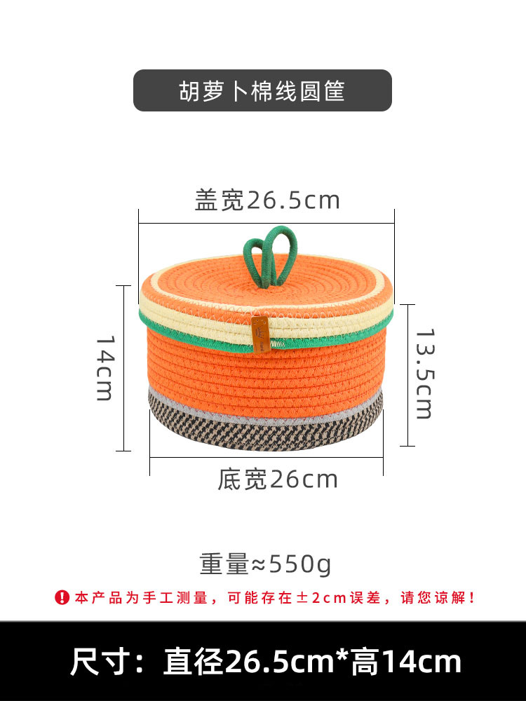 데스크탑 면실 수납바구니, 화장품 및 장난감 정리함, 잡화 및 간식 수납함, 뚜껑이 있는 침대 옆 호박 뜨개질 바구니