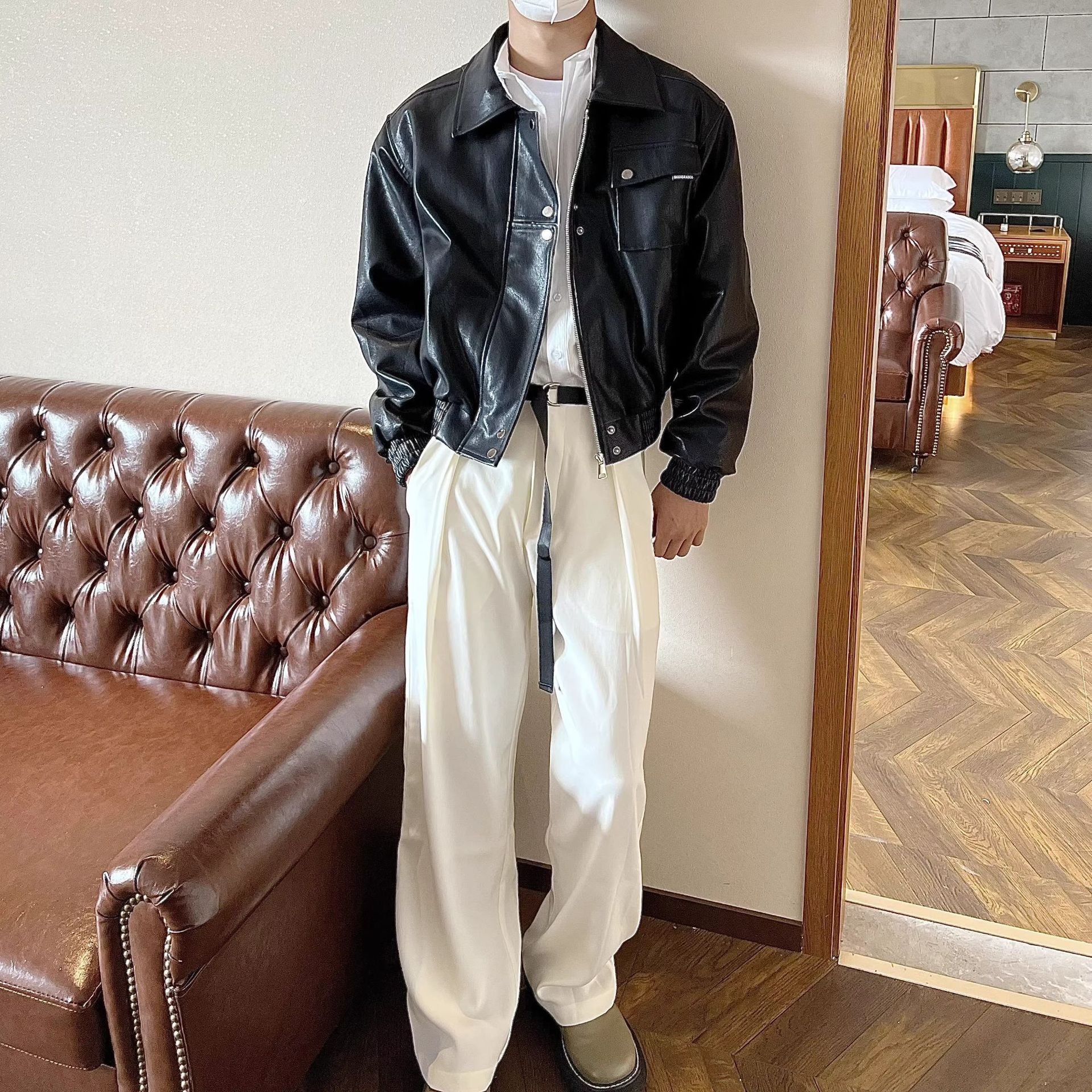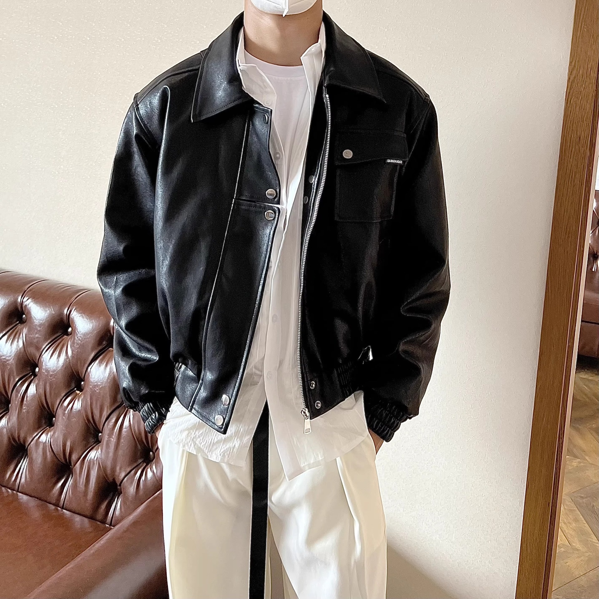 패션 틈새 시장 심플한 하이 엔드 PU 가죽 자켓 남성용 복고풍 잘 생긴 오토바이 자켓 캐주얼 자켓 탑스토어 가기