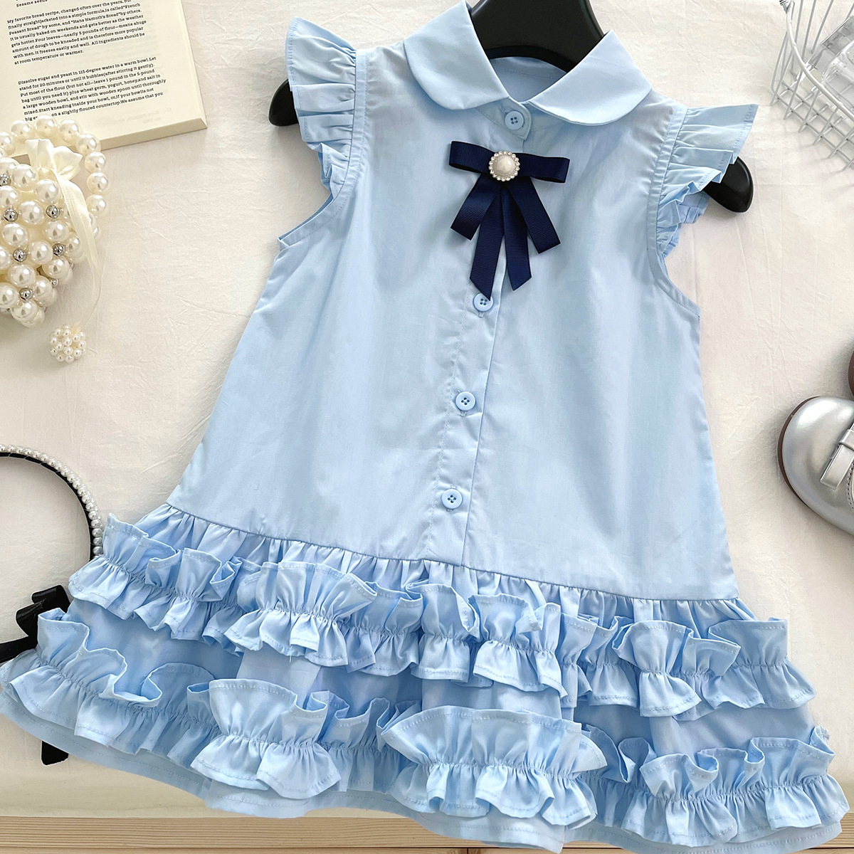 2025 새로운 소녀 작은 파리 소매 셔츠 원피스 소녀 서양식 큰 치마 공주 원피스 원피스 패션