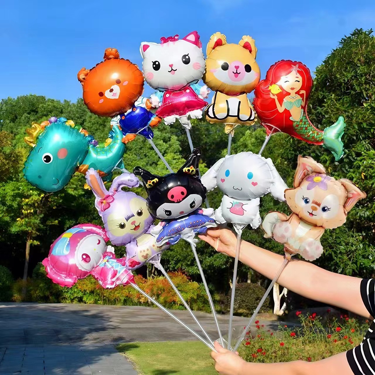 새해 어린이 만화 풍선 대형 알루미늄 휴대용 스틱 클립 풍선 유치원 장식 푸시 스톨 장난감스토어 가기