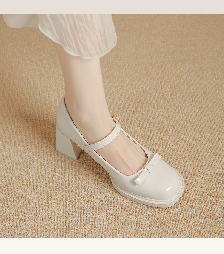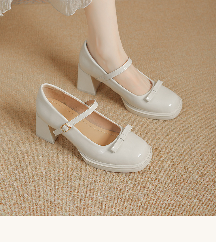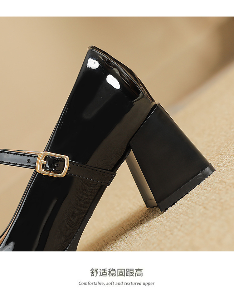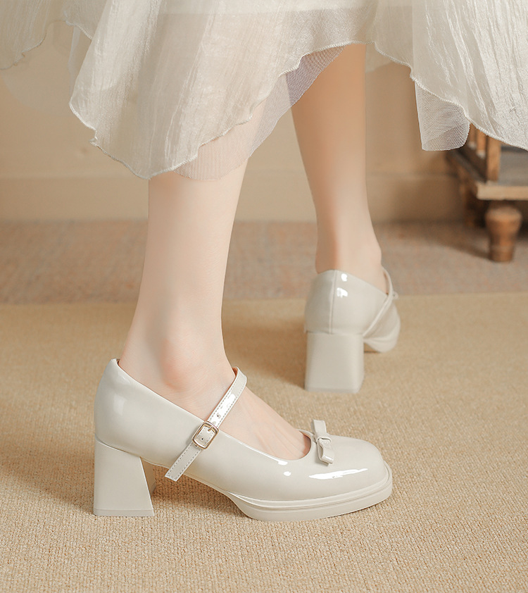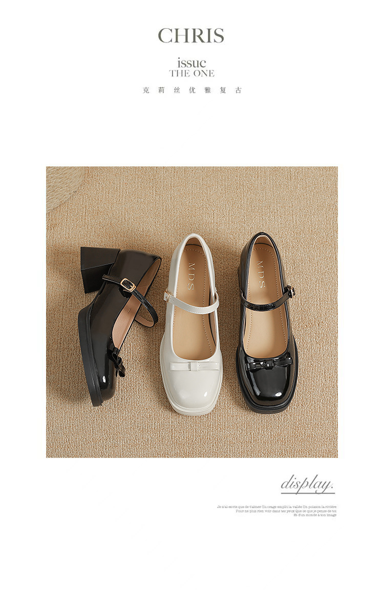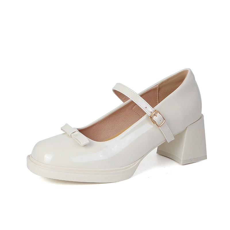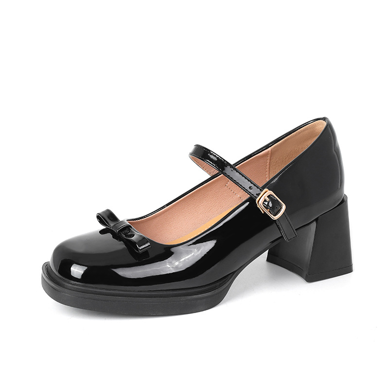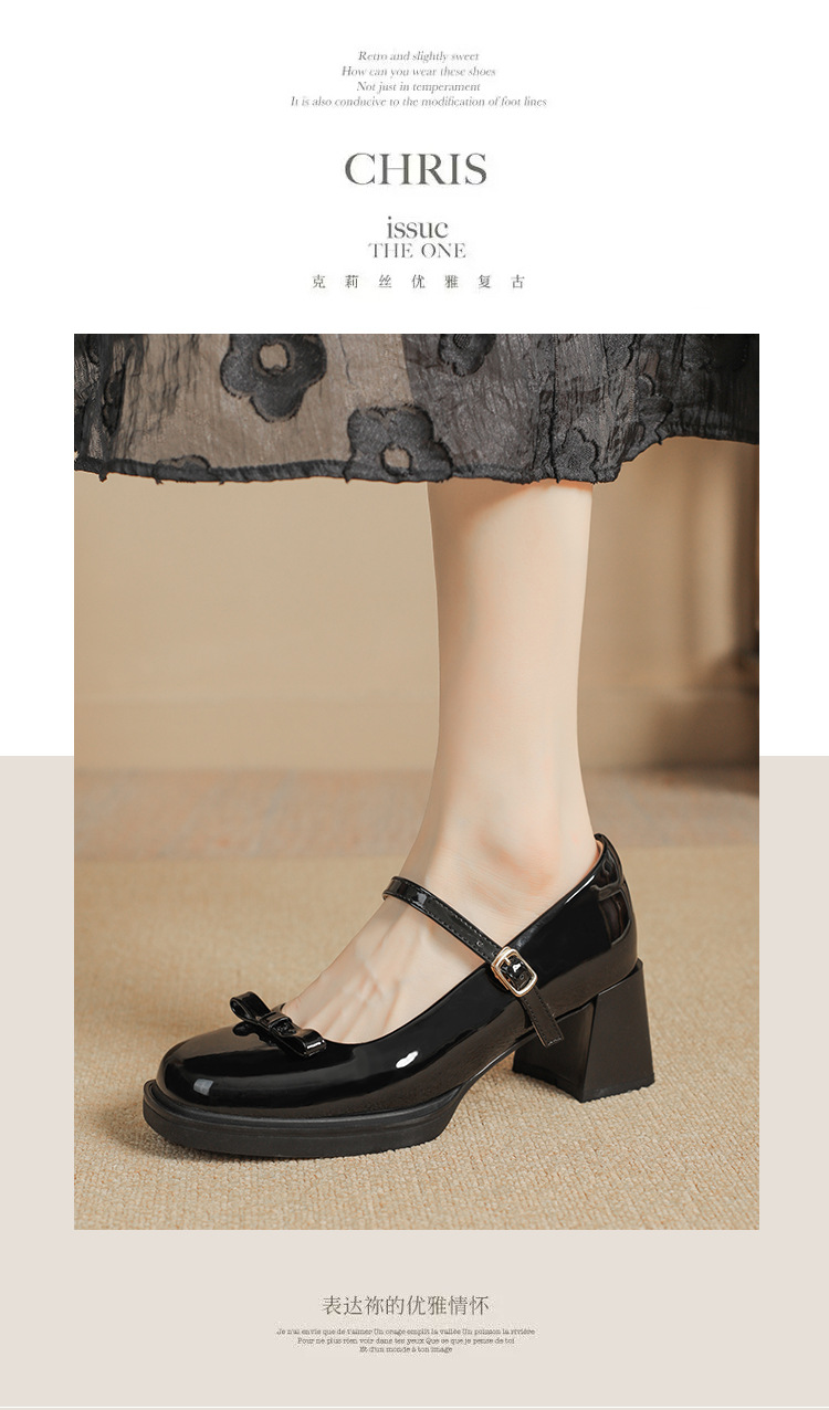 재고 흑백 6CM 두꺼운 밑창 프랑스 메리 제인 여성 신발 32 스몰 사이즈 가죽 신발 활 공주 신발스토어 가기