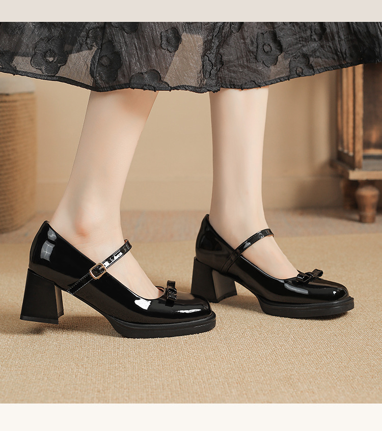 재고 흑백 6CM 두꺼운 밑창 프랑스 메리 제인 여성 신발 32 스몰 사이즈 가죽 신발 활 공주 신발