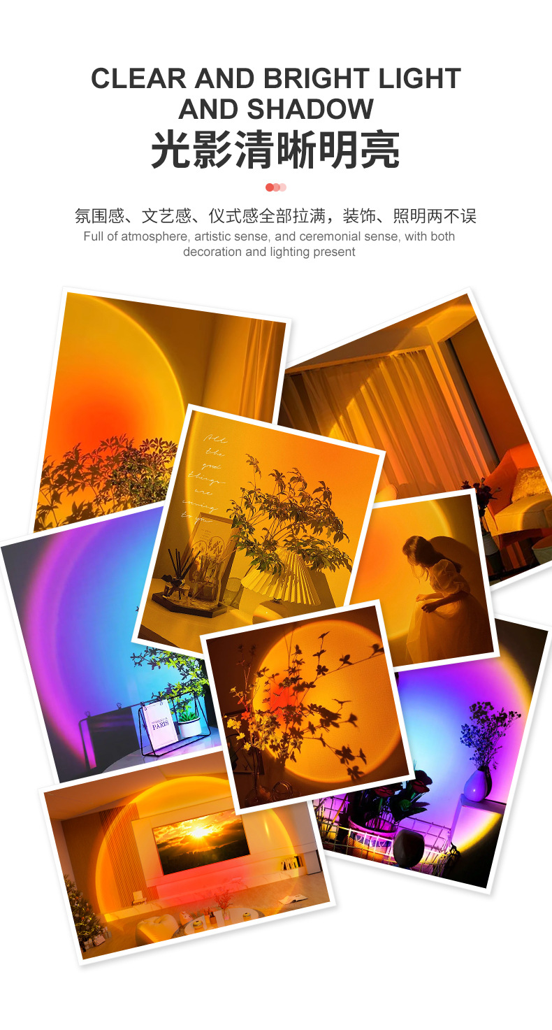 크로스보더 크리에이티브 라이브 방송 장식용 보조광 LED 야간등 인터넷 인기 선셋 라이트 분위기 조명 프로젝션 사진 조명스토어 가기