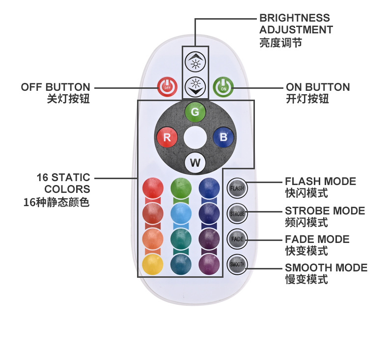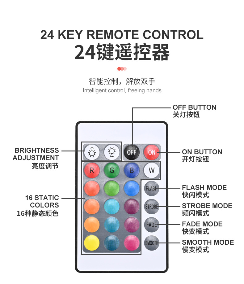 • RGB16 색상 - 24키 사각형 리모콘 포함