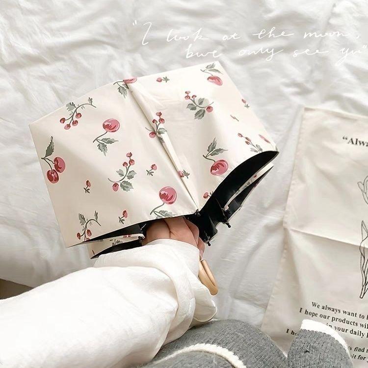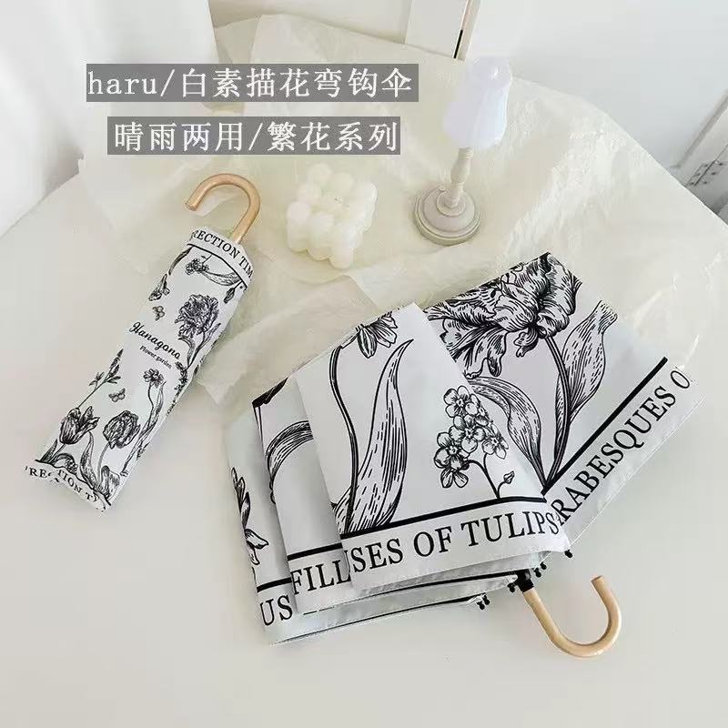 프랑스 후크 우산 맑고 비오는 이중 사용 여성 매뉴얼 접는 태양 우산 선 스크린 자외선 차단 블랙 고무 햇빛스토어 가기