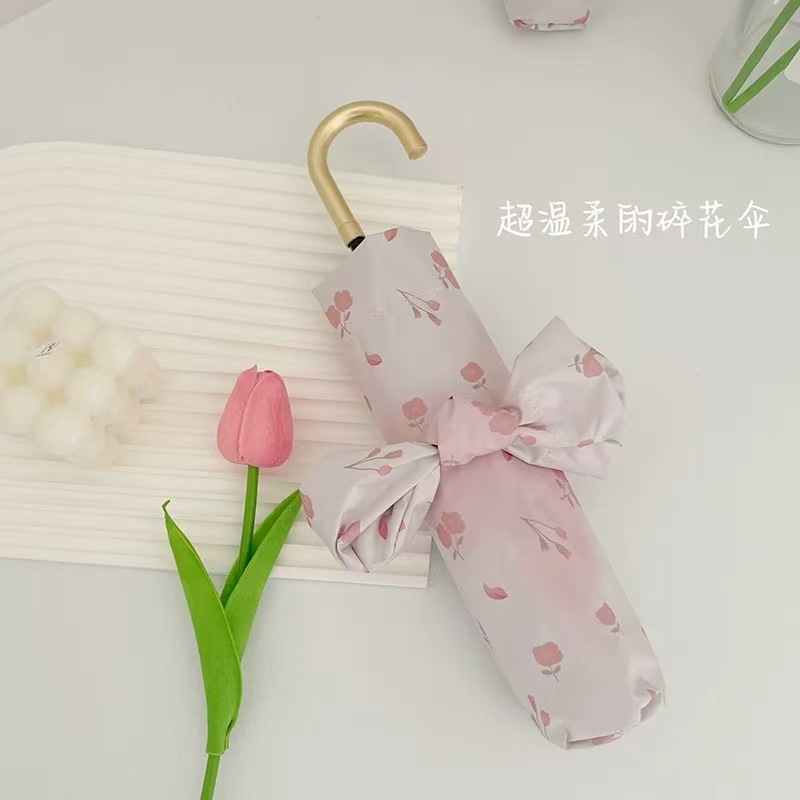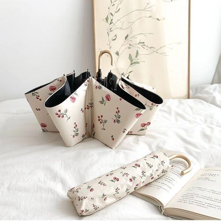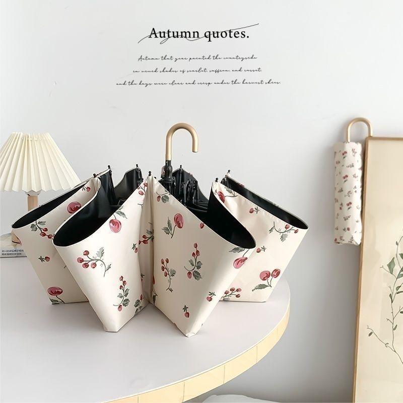프랑스 후크 우산 맑고 비오는 이중 사용 여성 매뉴얼 접는 태양 우산 선 스크린 자외선 차단 블랙 고무 햇빛