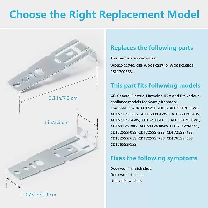 Perfect Replacement: Our 1-Pack WD01X21740 GE Dishwasher Mounting Bracket serve as ideal replacements for part numbers like WD01X10598, GEHWD01X21740, WD01X21740, PS11700868, and more. Make your dishwasher installation hassle-free with our dishwasher mounting bracket.