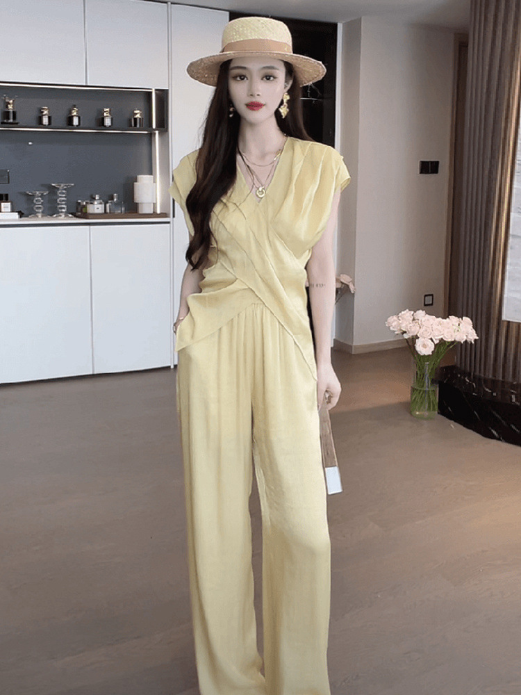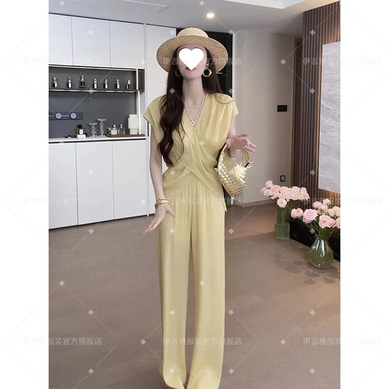 패션 뉴 세트 여성 2025 여름 솔리드 컬러 폭발 통근 투피스 V-Neck