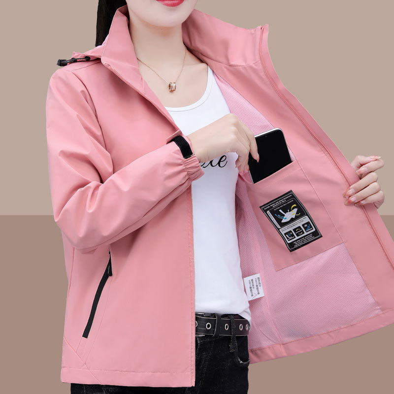 국경 간 캐주얼 폭행 여성 쇼트 재킷 2025 봄 새 핑크 후드 플러스 사이즈 여성 재킷 도매스토어 가기