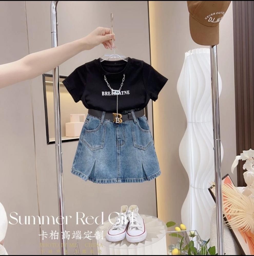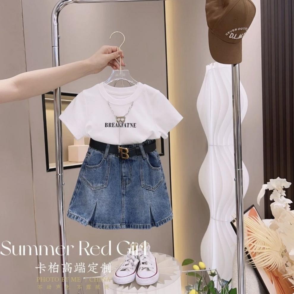 • 흰색 티셔츠와 데님 스커트 정장