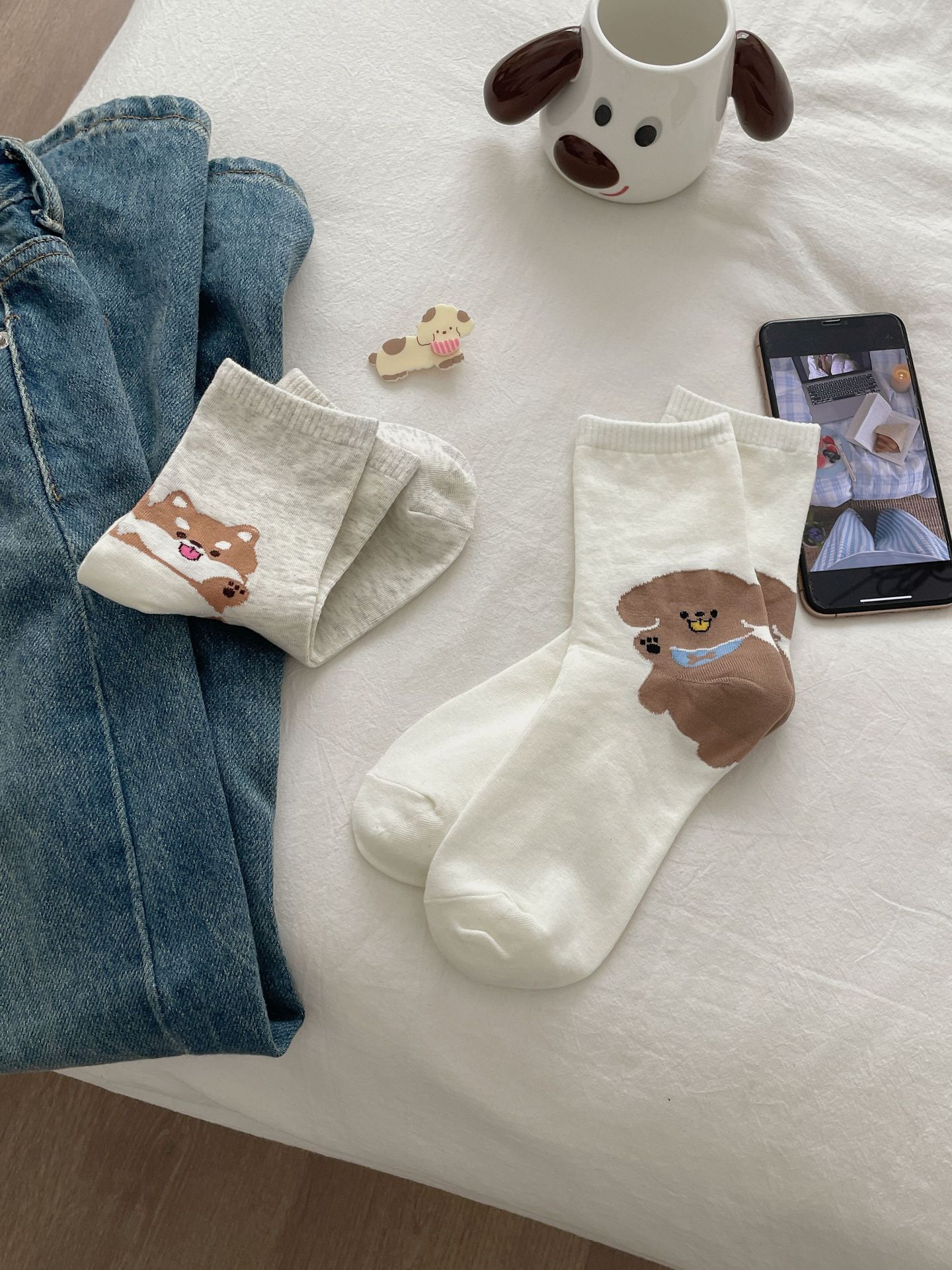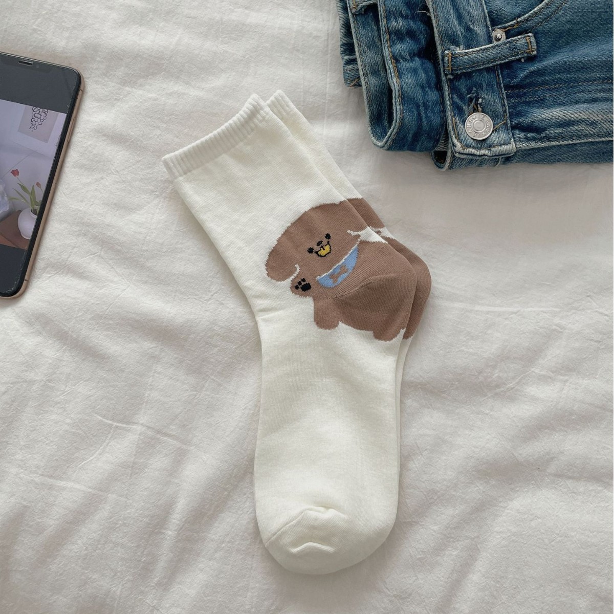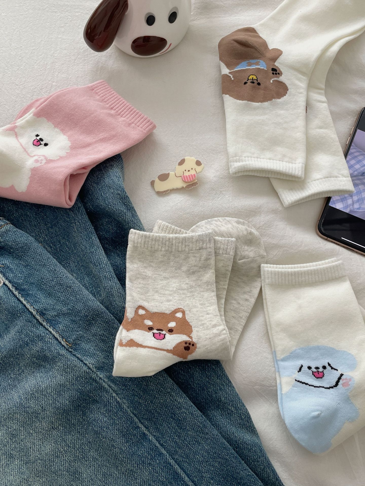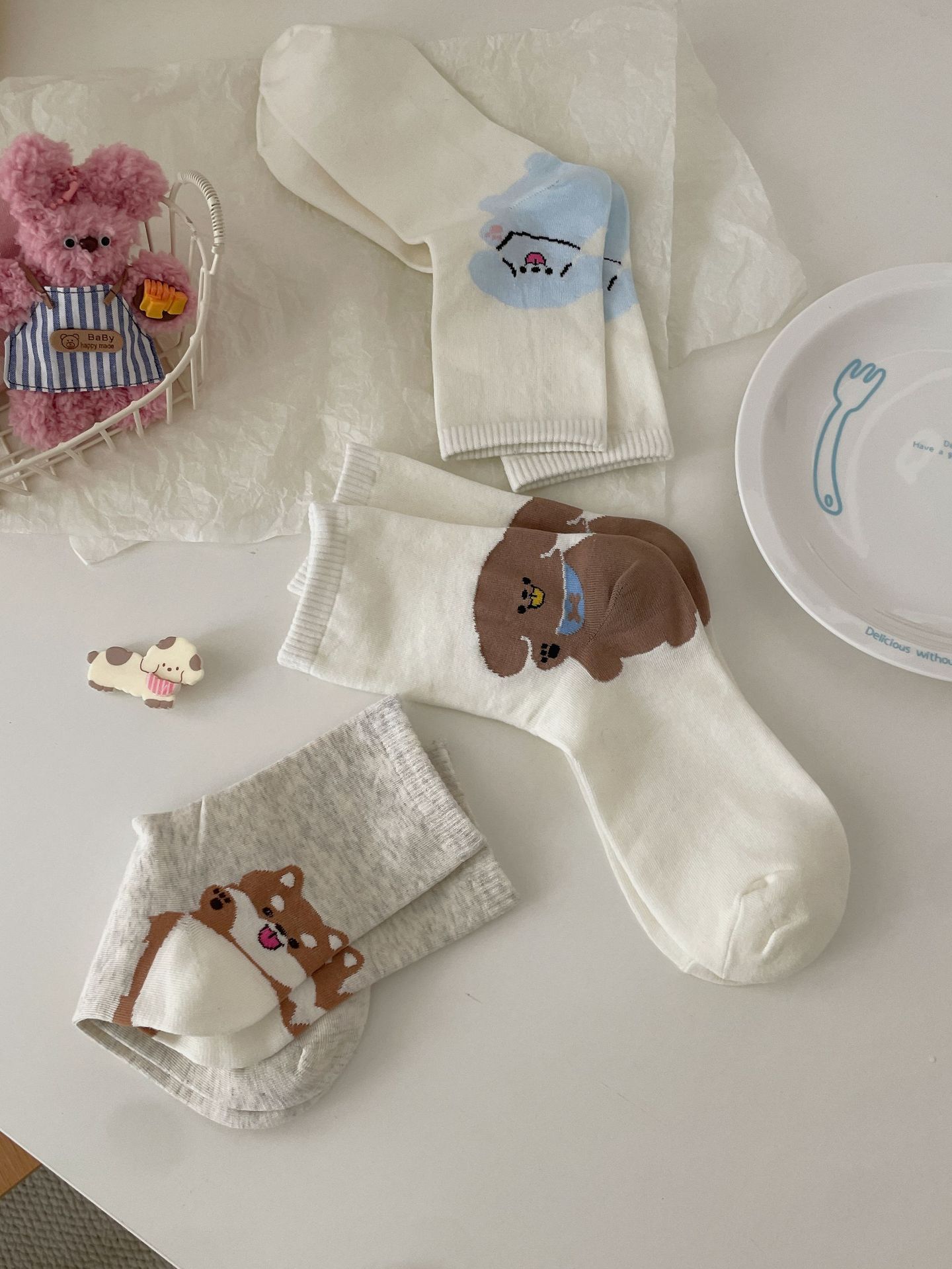 한국 동대문 같은 스타일 만화 귀여운 개 여자 중간 시즌 면 양말 올매치 대학 스타일 여성 양말스토어 가기