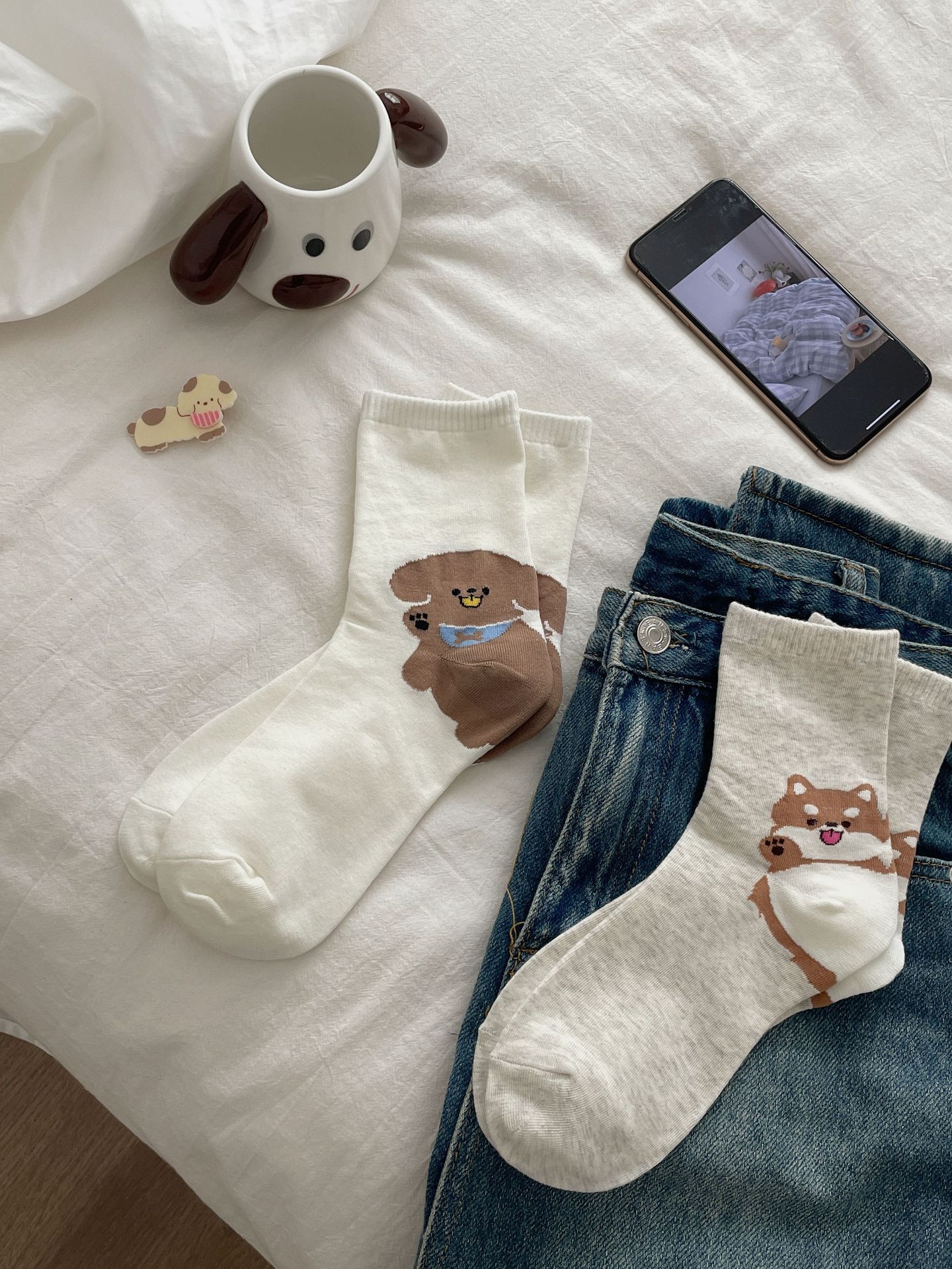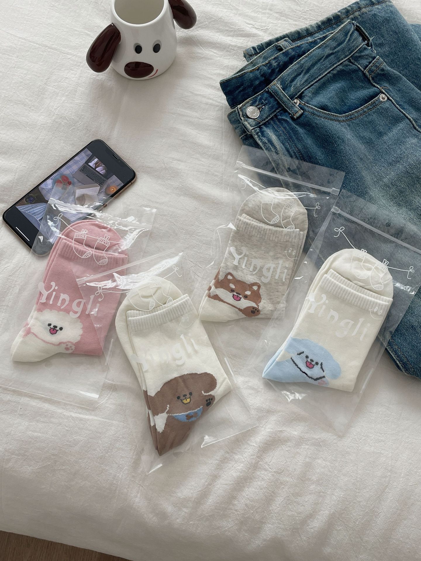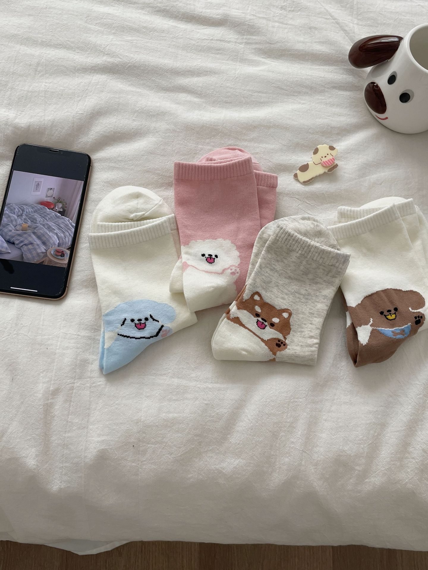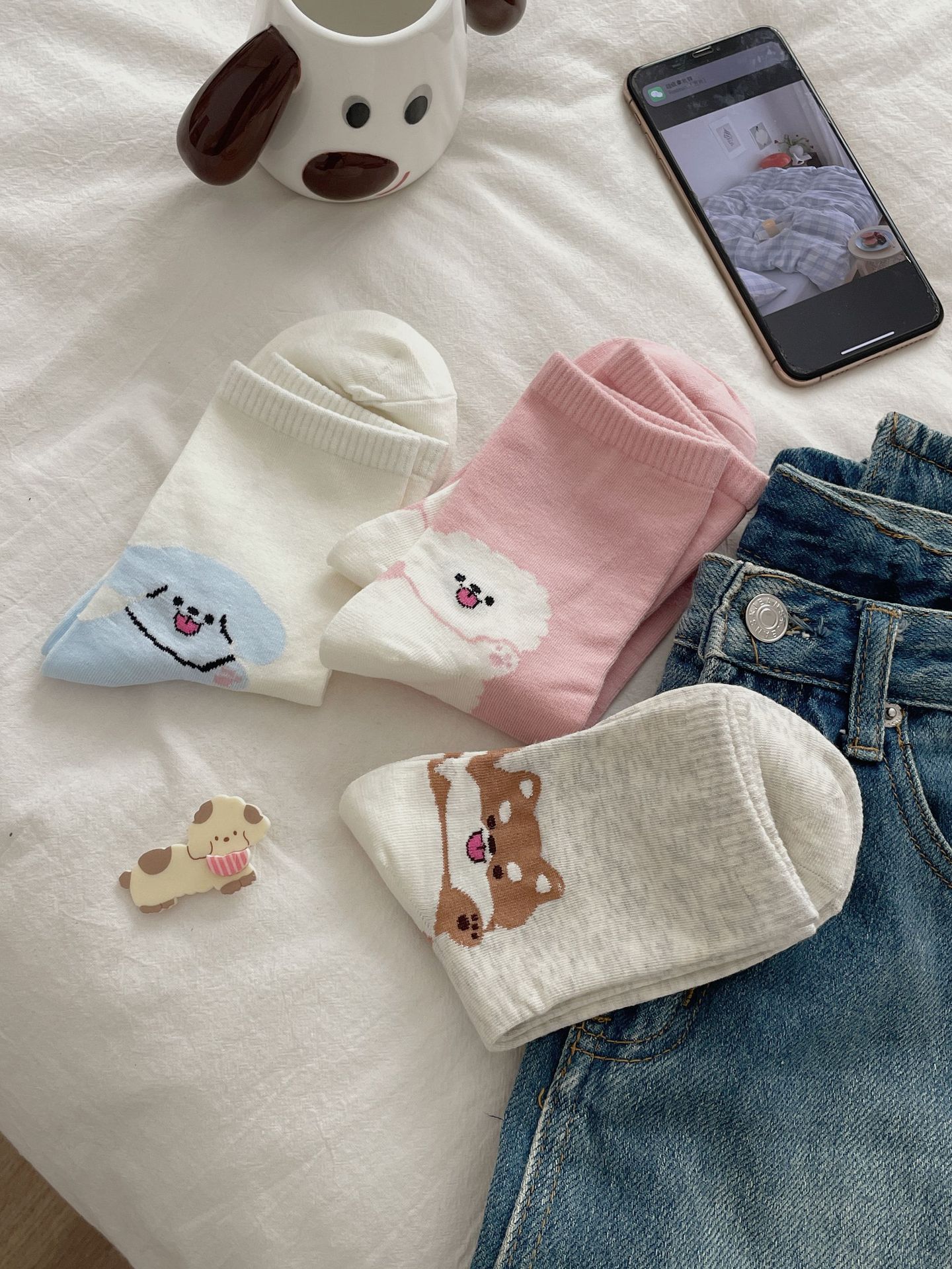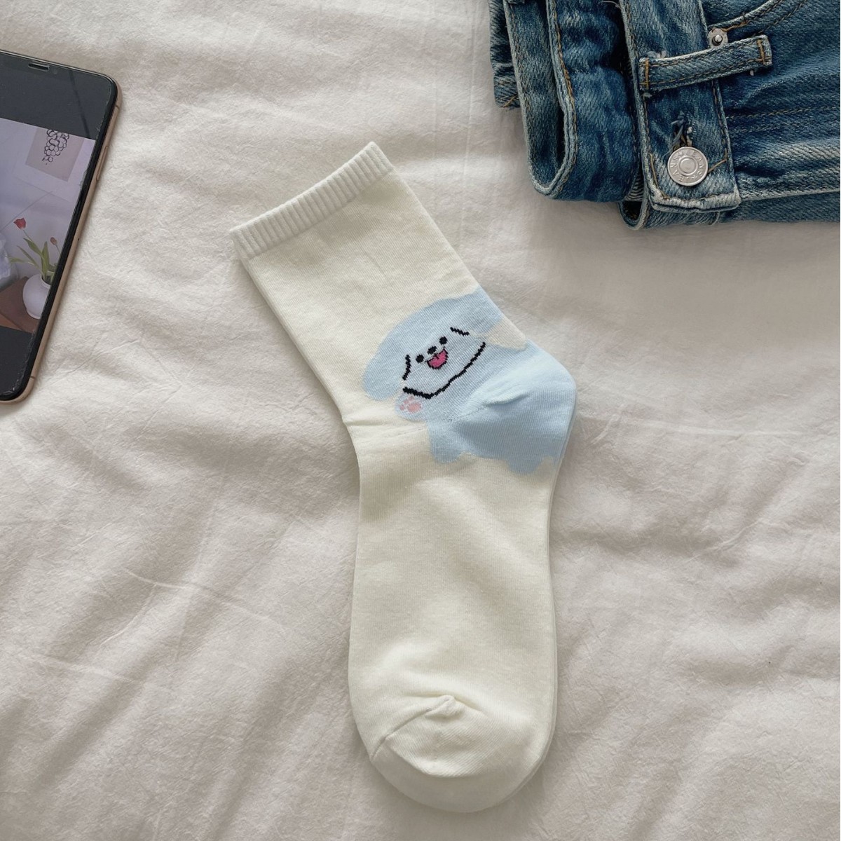 한국 동대문 같은 스타일 만화 귀여운 개 여자 중간 시즌 면 양말 올매치 대학 스타일 여성 양말스토어 가기