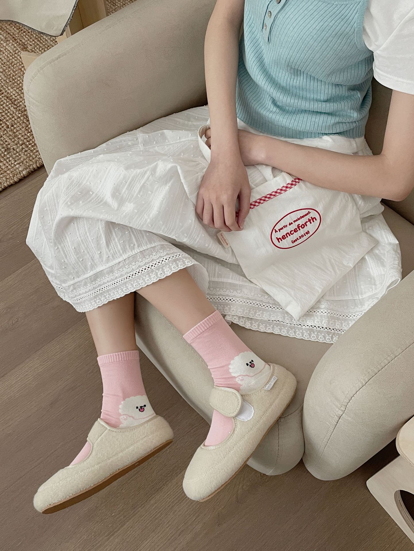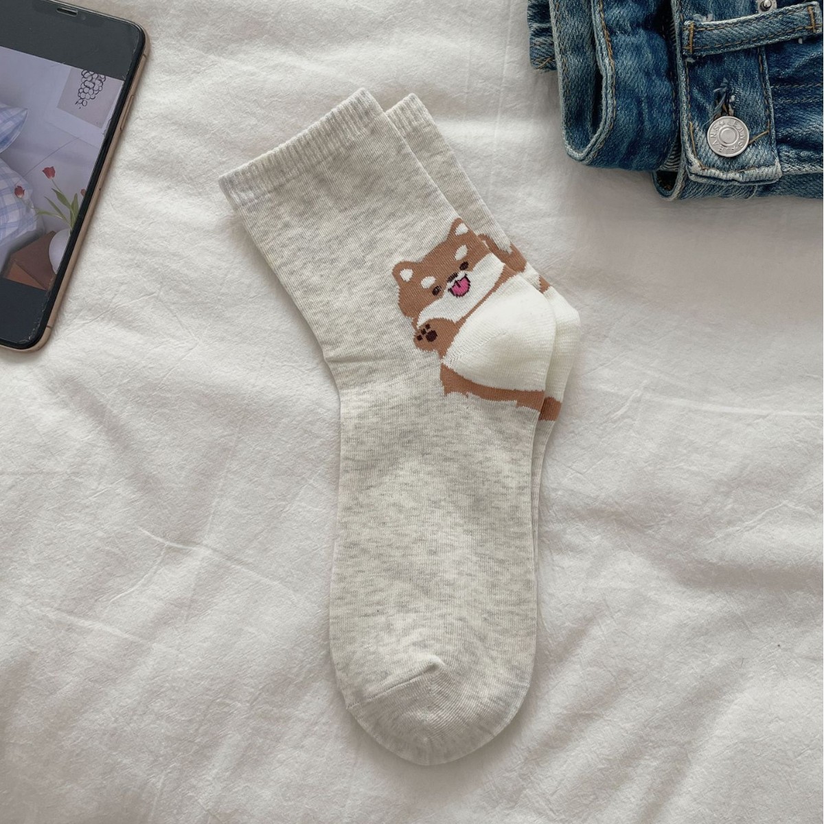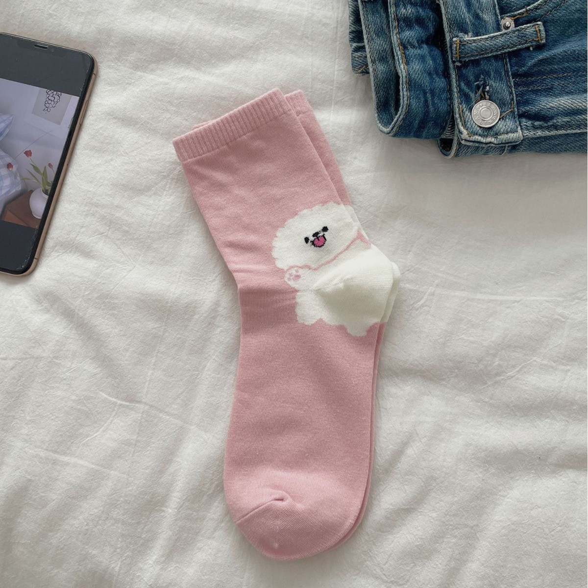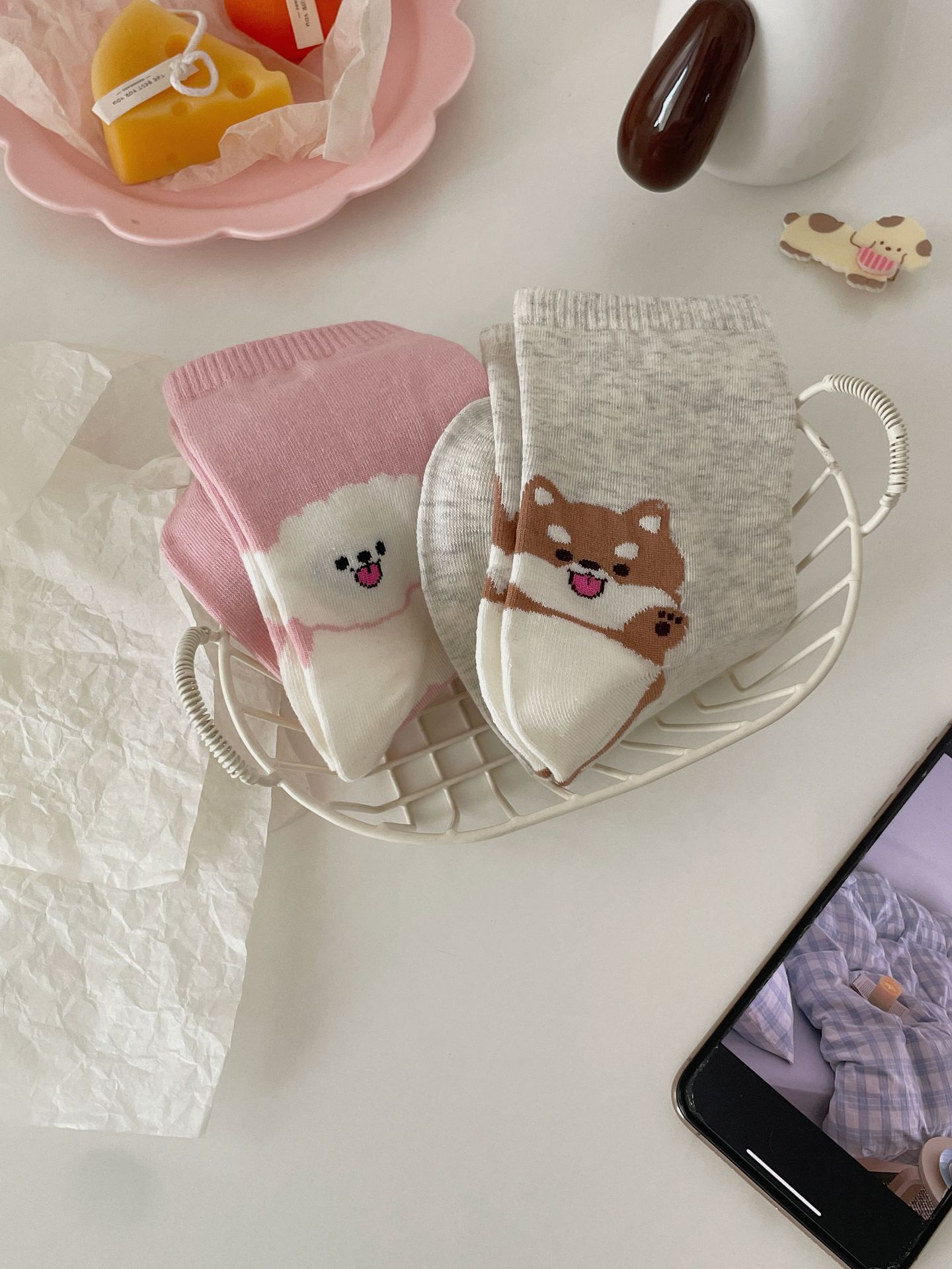 한국 동대문 같은 스타일 만화 귀여운 개 여자 중간 시즌 면 양말 올매치 대학 스타일 여성 양말스토어 가기