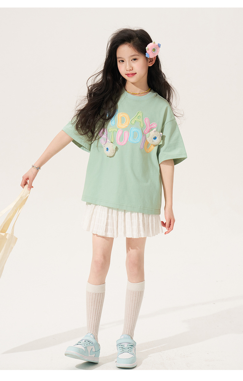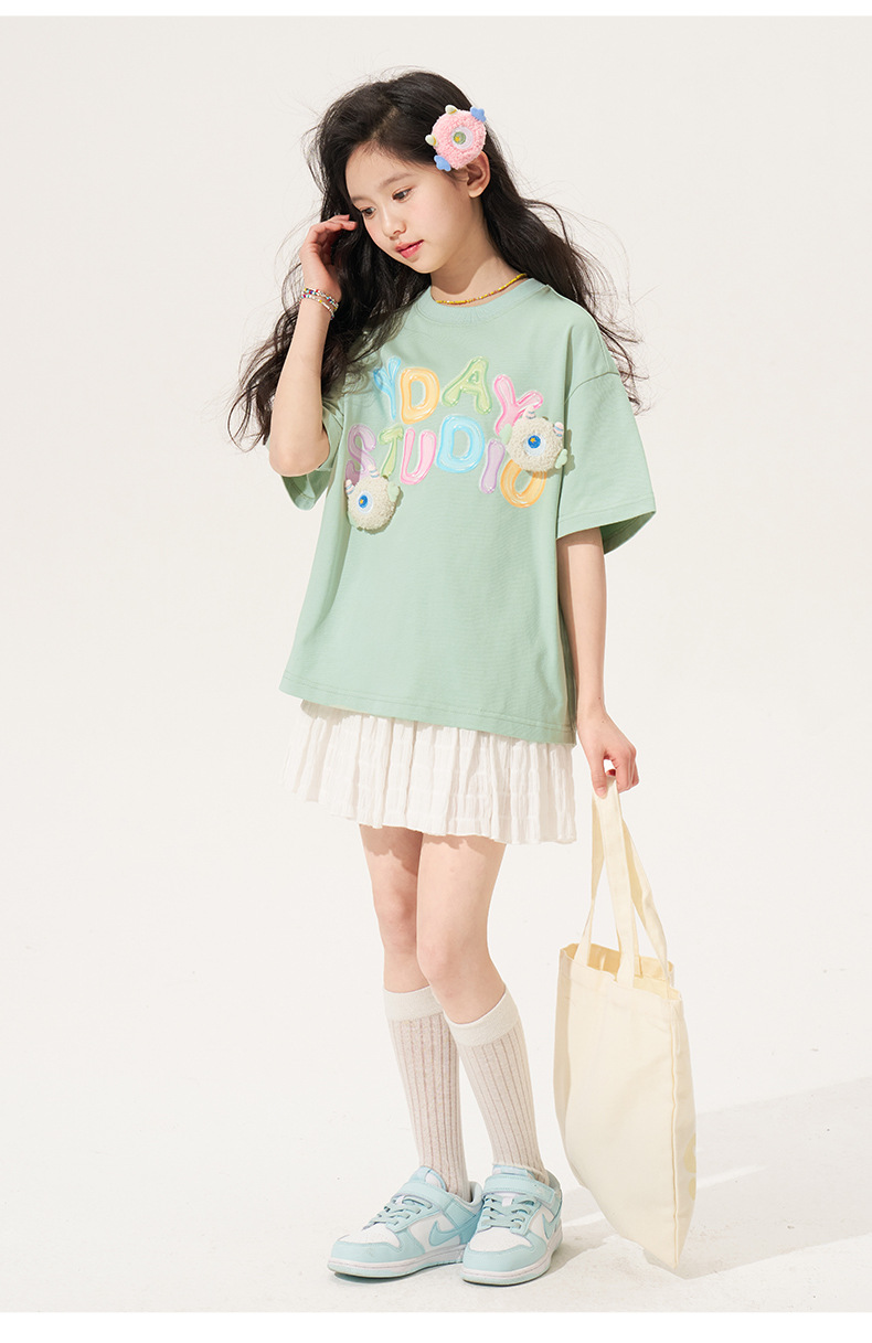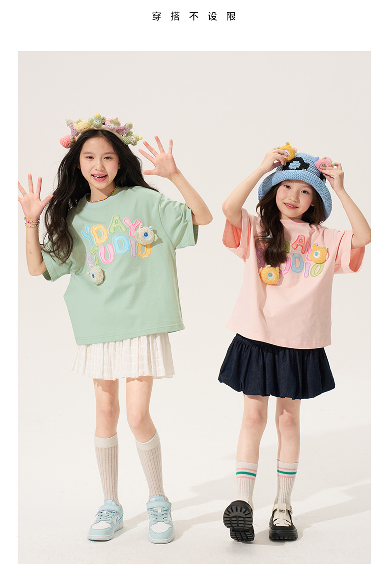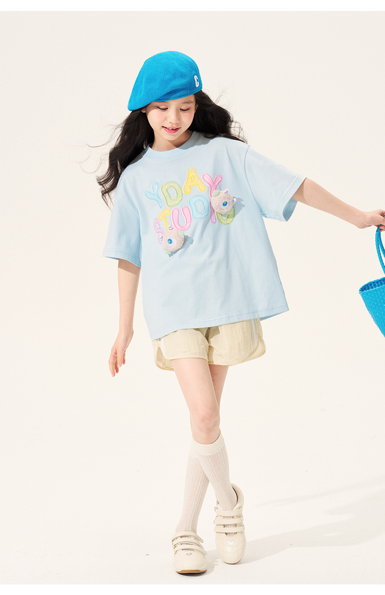100% 면 여아 반팔 티셔츠 2026 아동 여름 신상 입체 인형 상의 반팔 만화 티셔츠 아동복스토어 가기