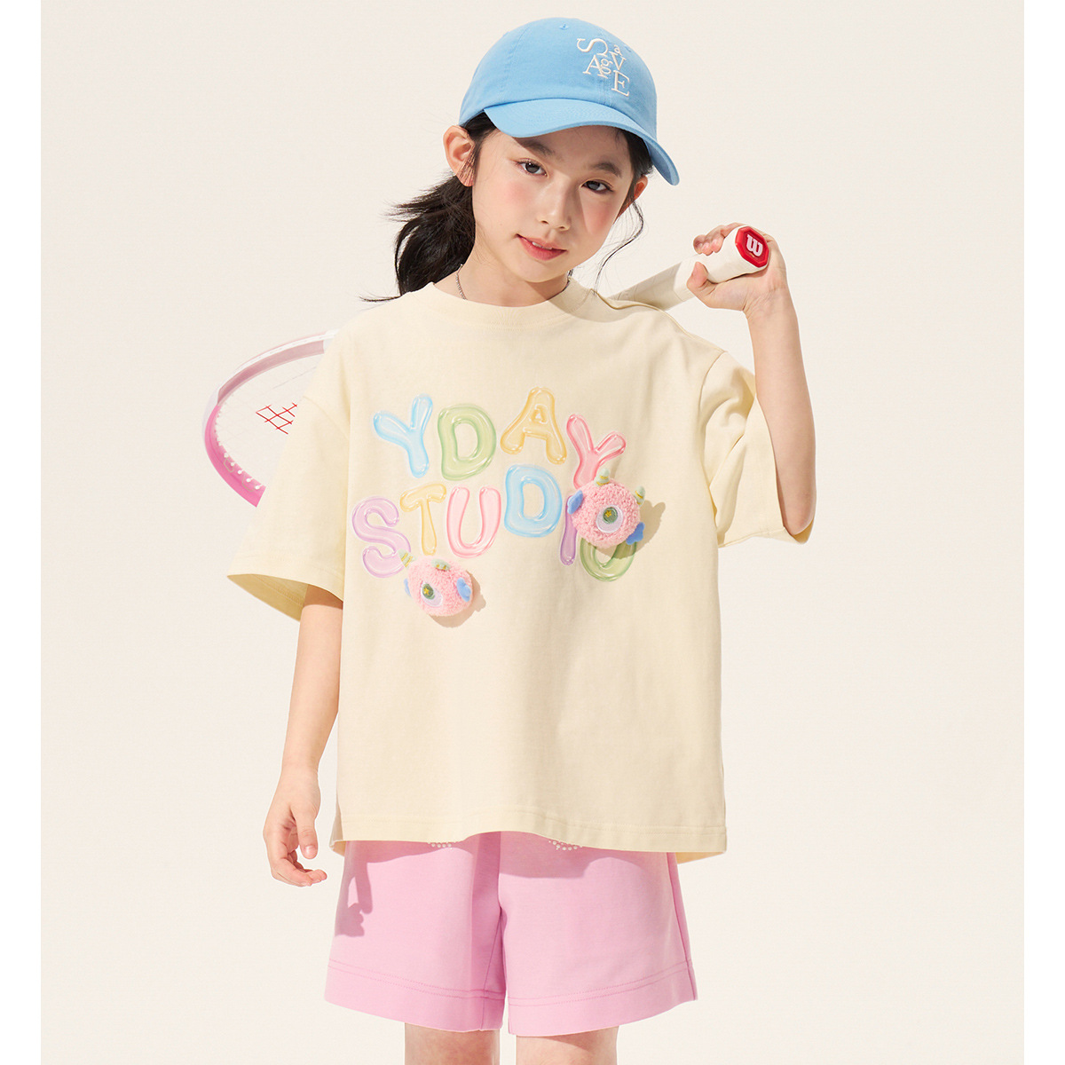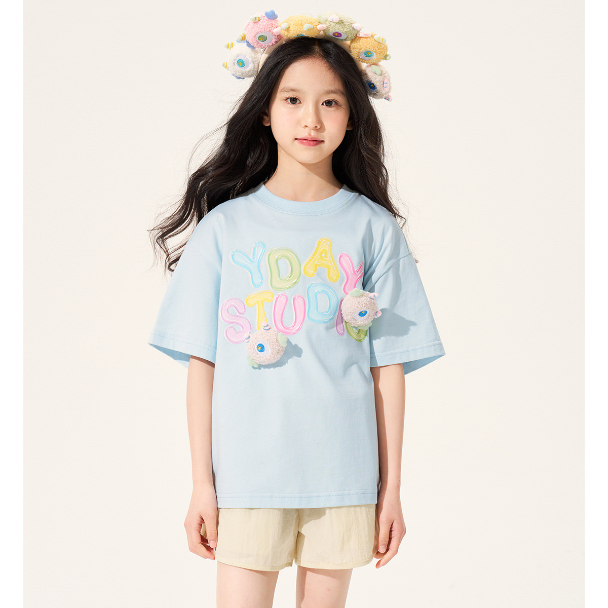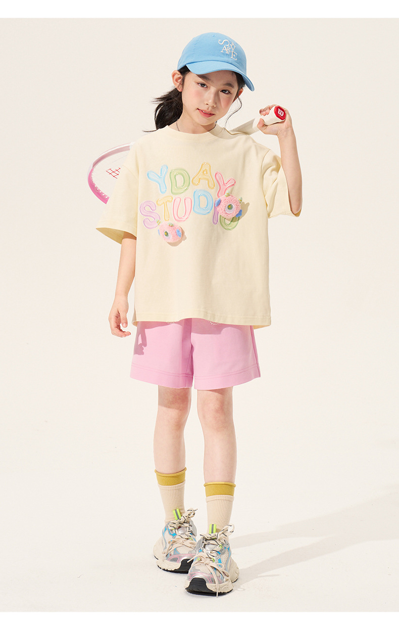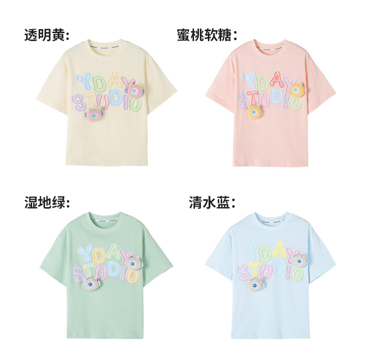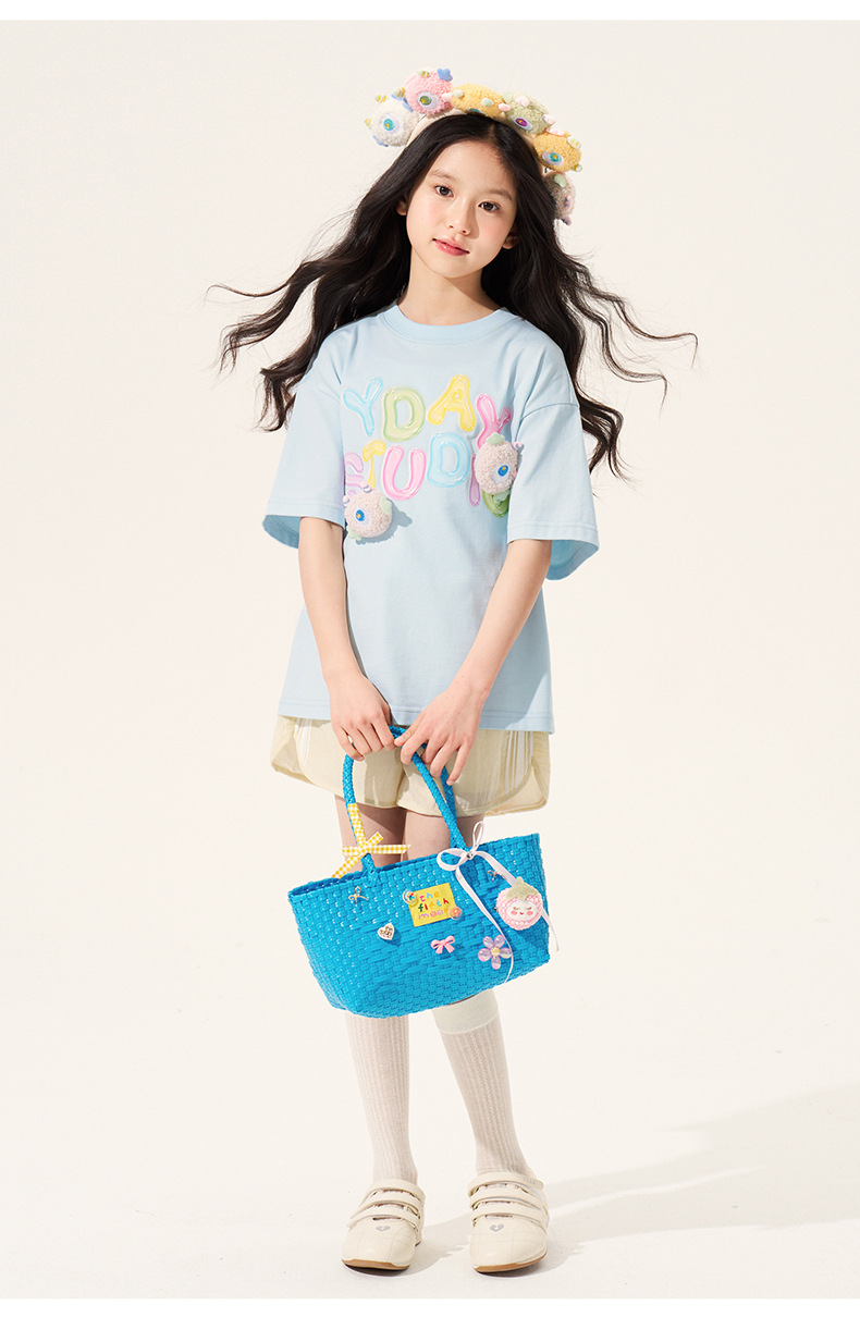 100% 면 여아 반팔 티셔츠 2026 아동 여름 신상 입체 인형 상의 반팔 만화 티셔츠 아동복스토어 가기