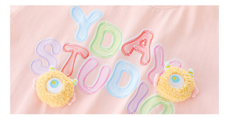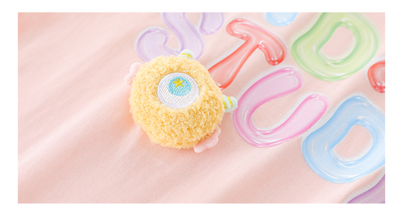 100% 면 여아 반팔 티셔츠 2026 아동 여름 신상 입체 인형 상의 반팔 만화 티셔츠 아동복