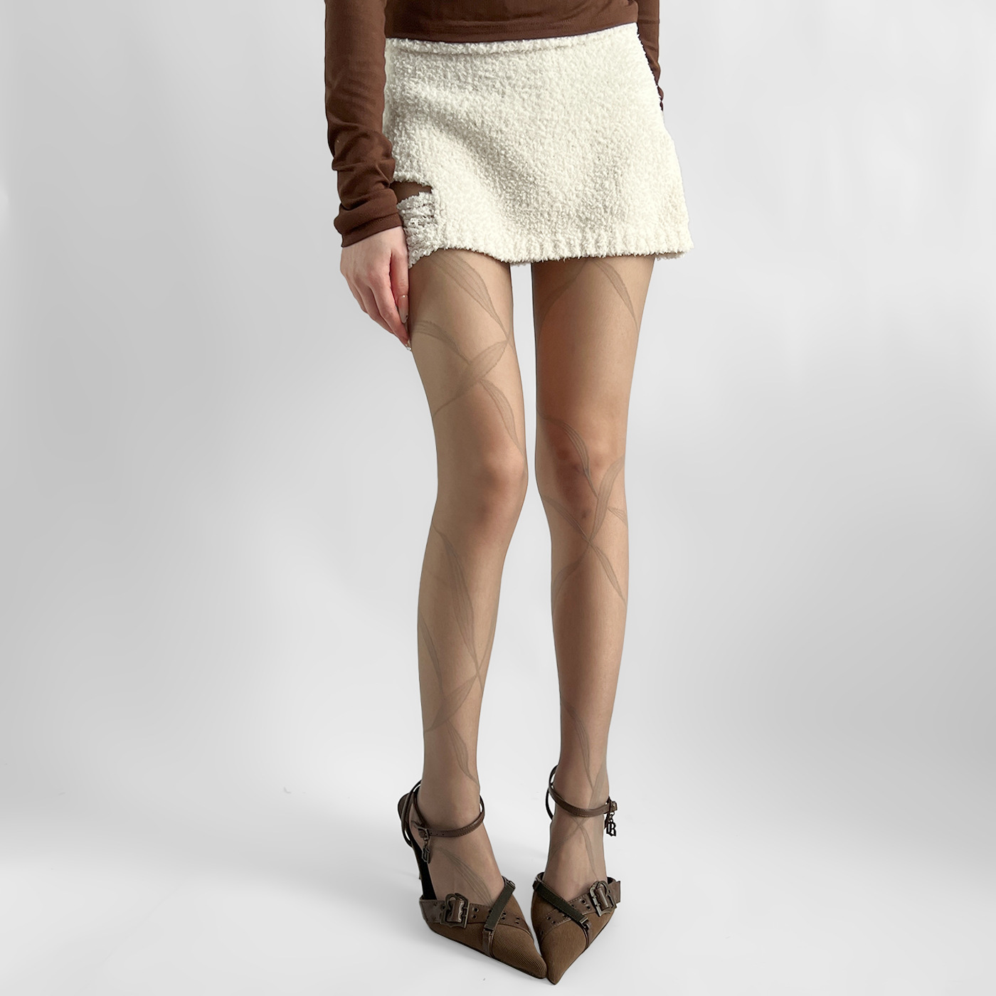 • 세로줄무늬 망사스타킹 화이트
