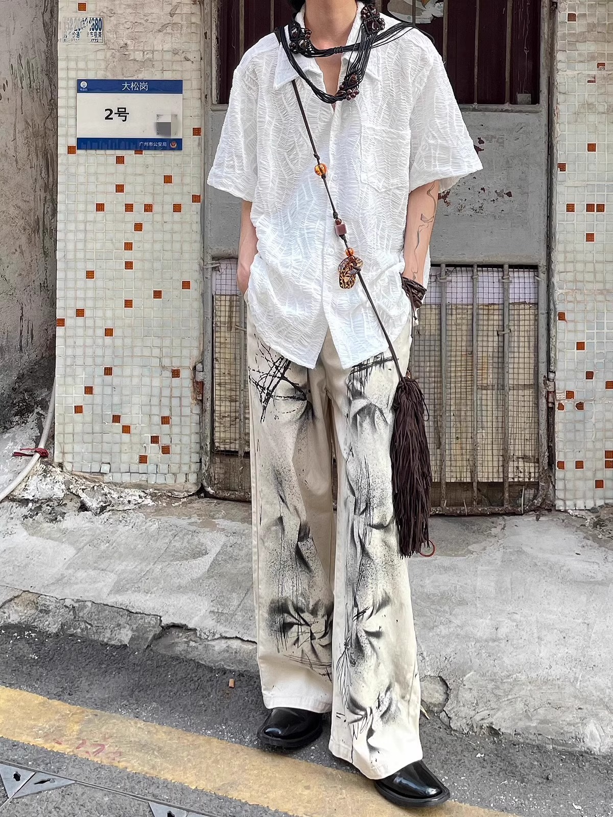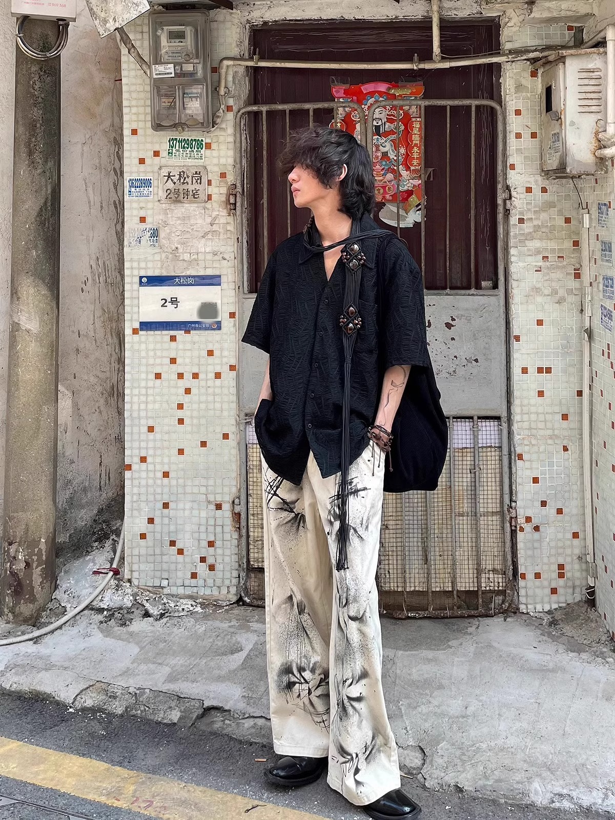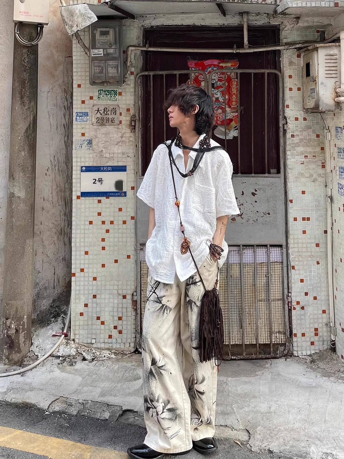 레트로 쿠바 칼라 주름없는 반팔 셔츠 남성 여름 새로운 틈새 디자인 루즈 캐주얼 카디건 재킷스토어 가기