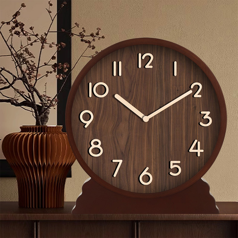 단단한 나무 데스크탑 홈 시계 나무 데스크탑 연구 테이블 시계 장식품 거실 테이블 시계 침묵 테이블 시계 간단한 시계