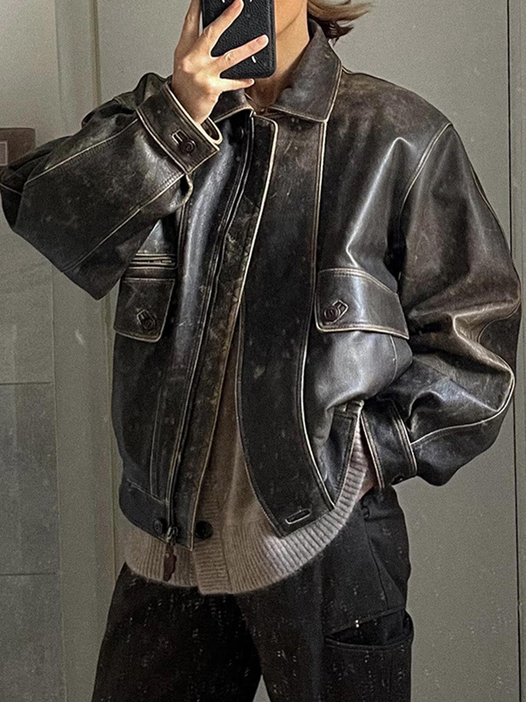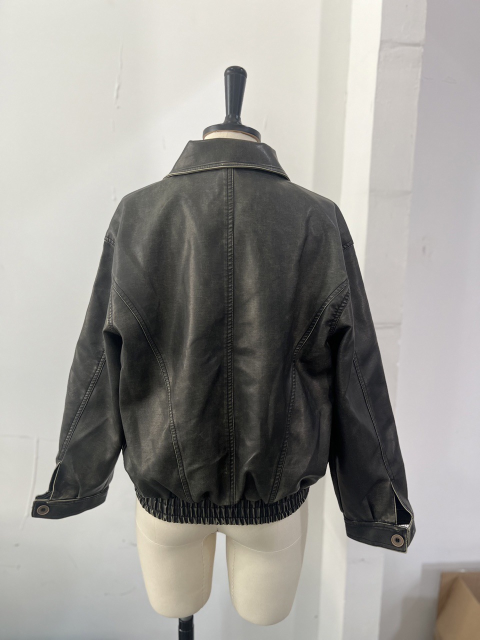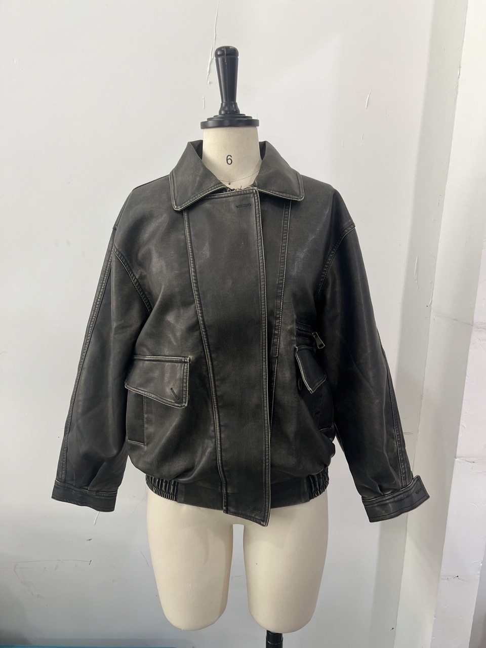 재고 있음 여성용 레트로 워시 가죽 자켓 2025 봄 크로스 보더 신작 오토바이 라펠 루즈 자켓 탑스토어 가기