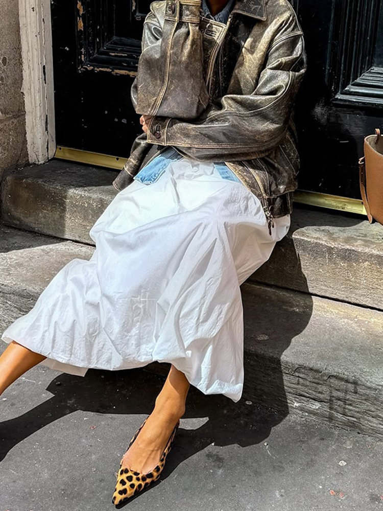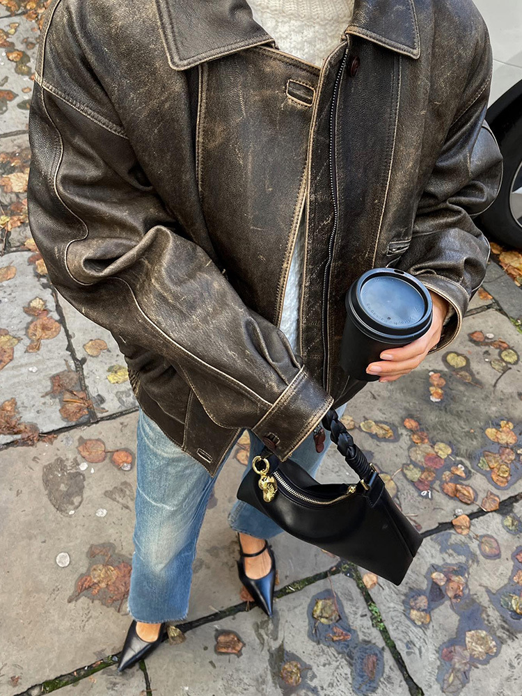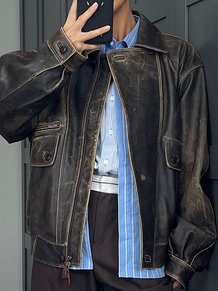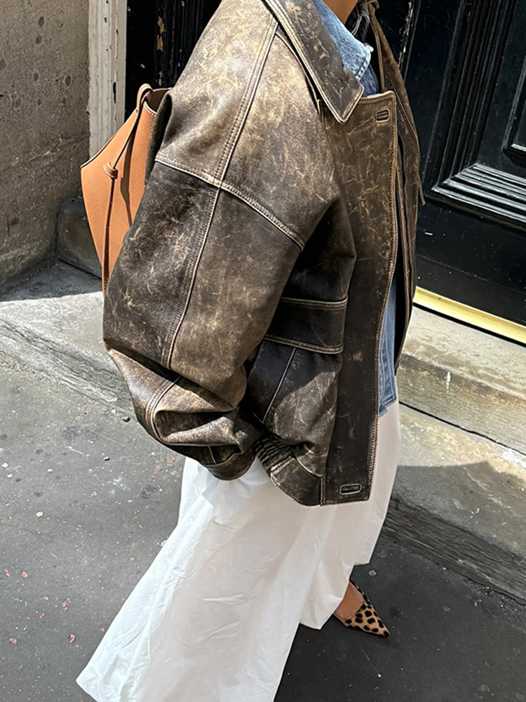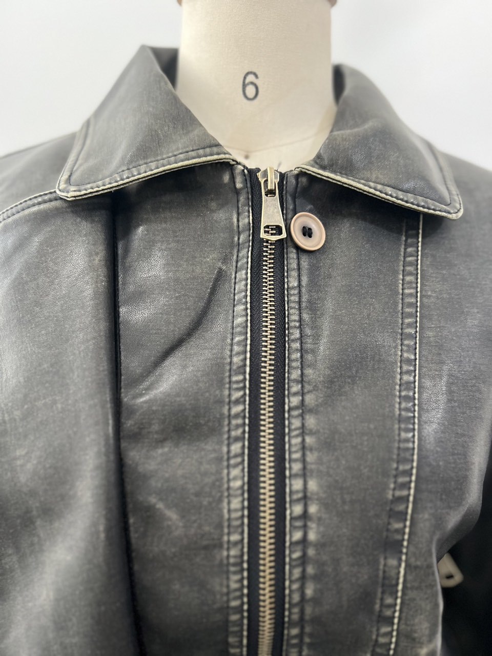 재고 있음 여성용 레트로 워시 가죽 자켓 2025 봄 크로스 보더 신작 오토바이 라펠 루즈 자켓 탑스토어 가기