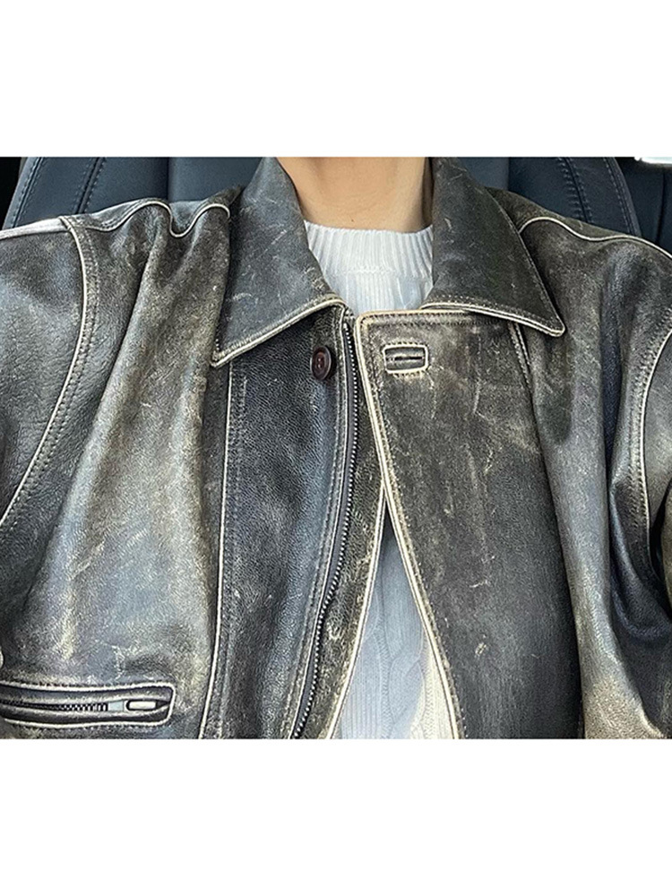 재고 있음 여성용 레트로 워시 가죽 자켓 2025 봄 크로스 보더 신작 오토바이 라펠 루즈 자켓 탑