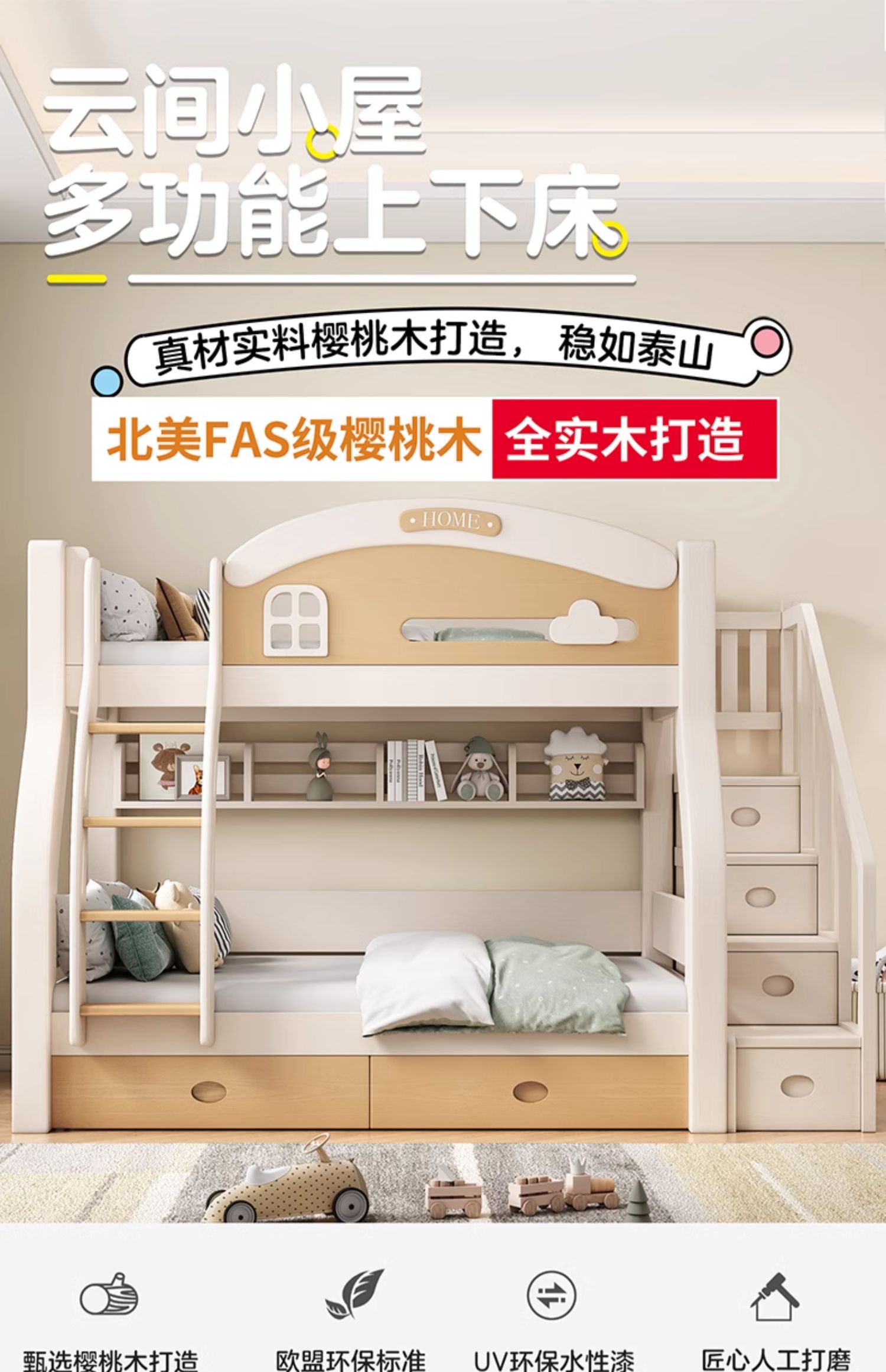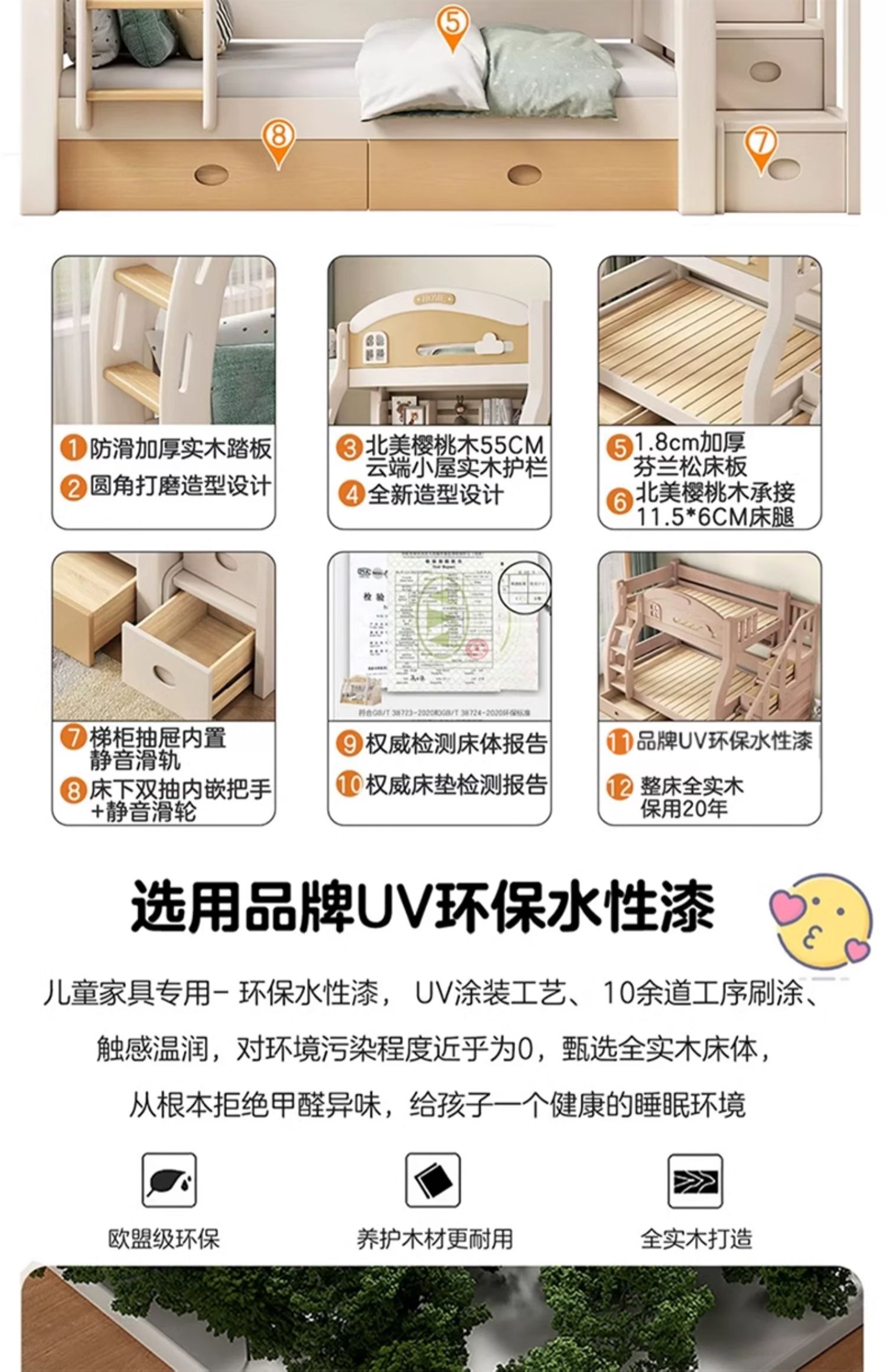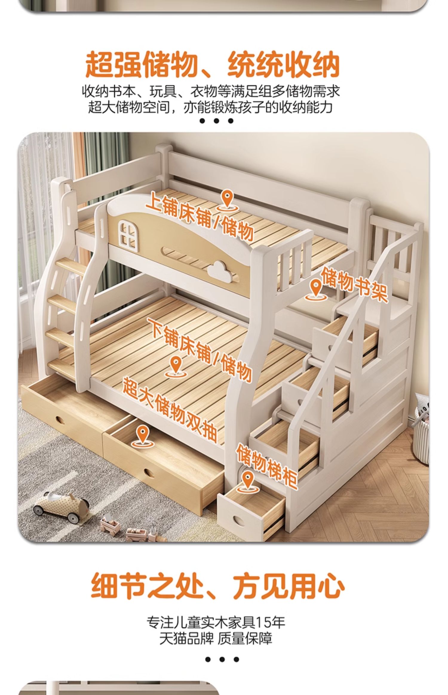 A ^ 모든 단단한 나무 침대 벙크 침대 높고 낮은 침대 성인 작은 아파트 2 층 어린이 침대 상하 침대 나무 침대 엄마와 아이스토어 가기
