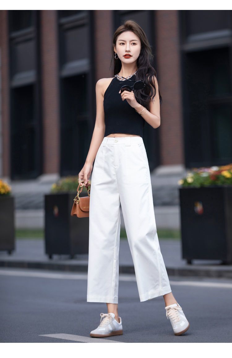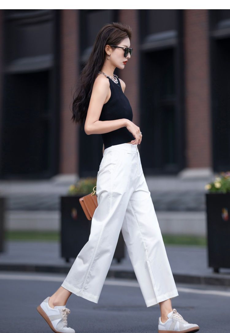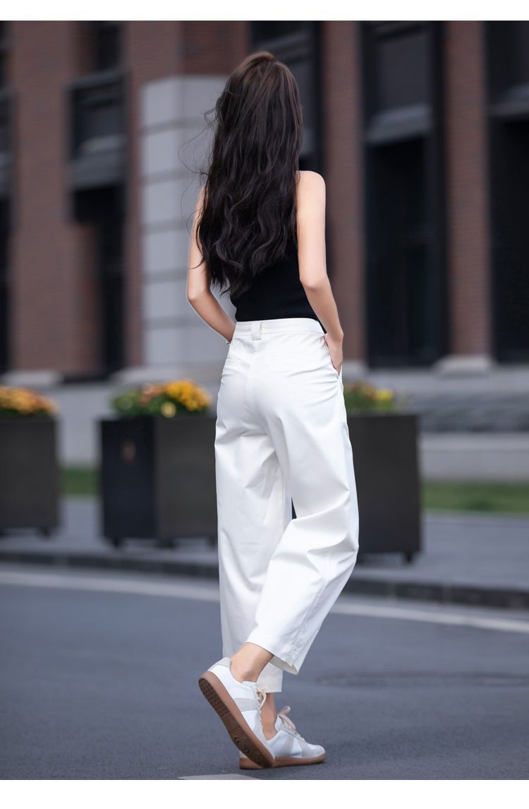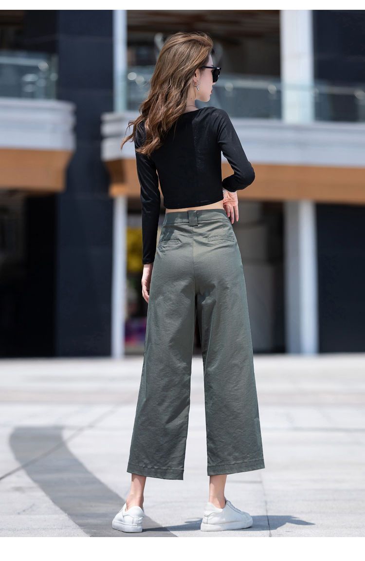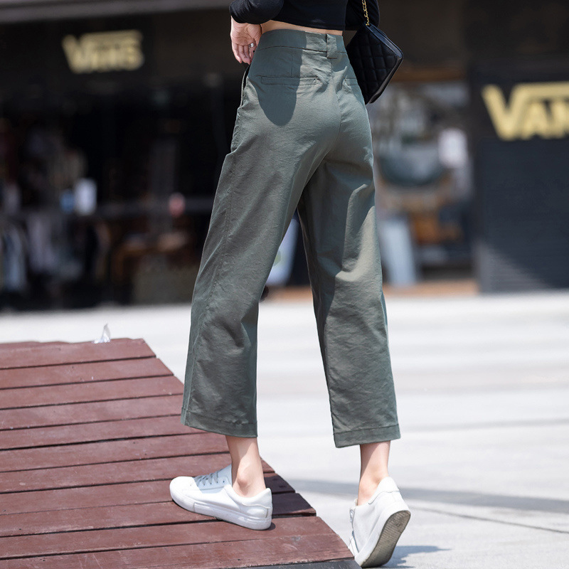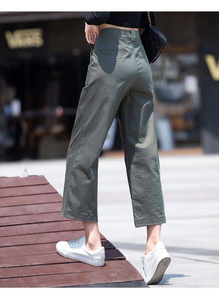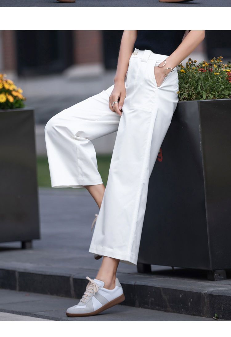 텐셀 와이드 레그 팬츠 여름 얇은 2025 새로운 8 점 스트레이트 레그 팬츠 솔리드 컬러 퓨어 코튼 슬리밍 캐주얼 9 점 바지스토어 가기