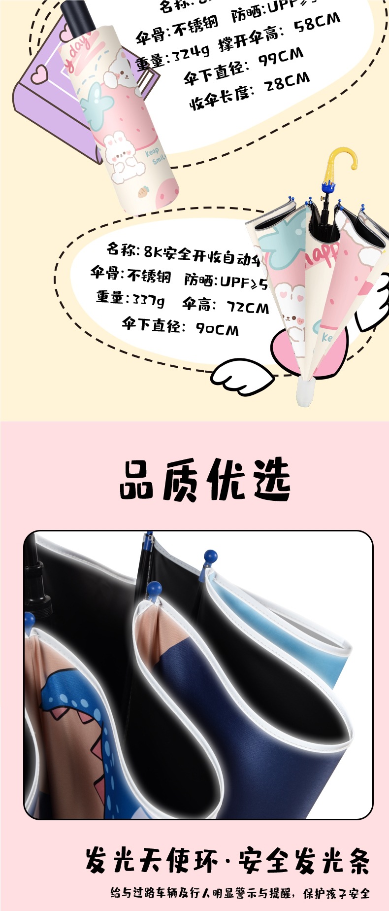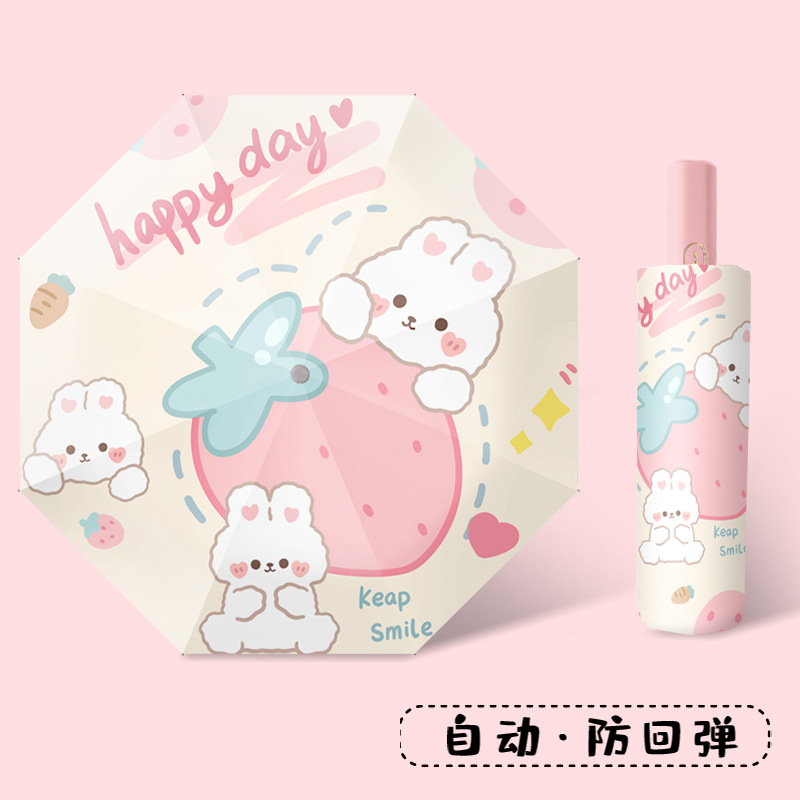 2025 새로운 딸기 토끼 안티 리바운드 어린이 태양 우산 초등학교 여자 학교 접이식 자동 우산