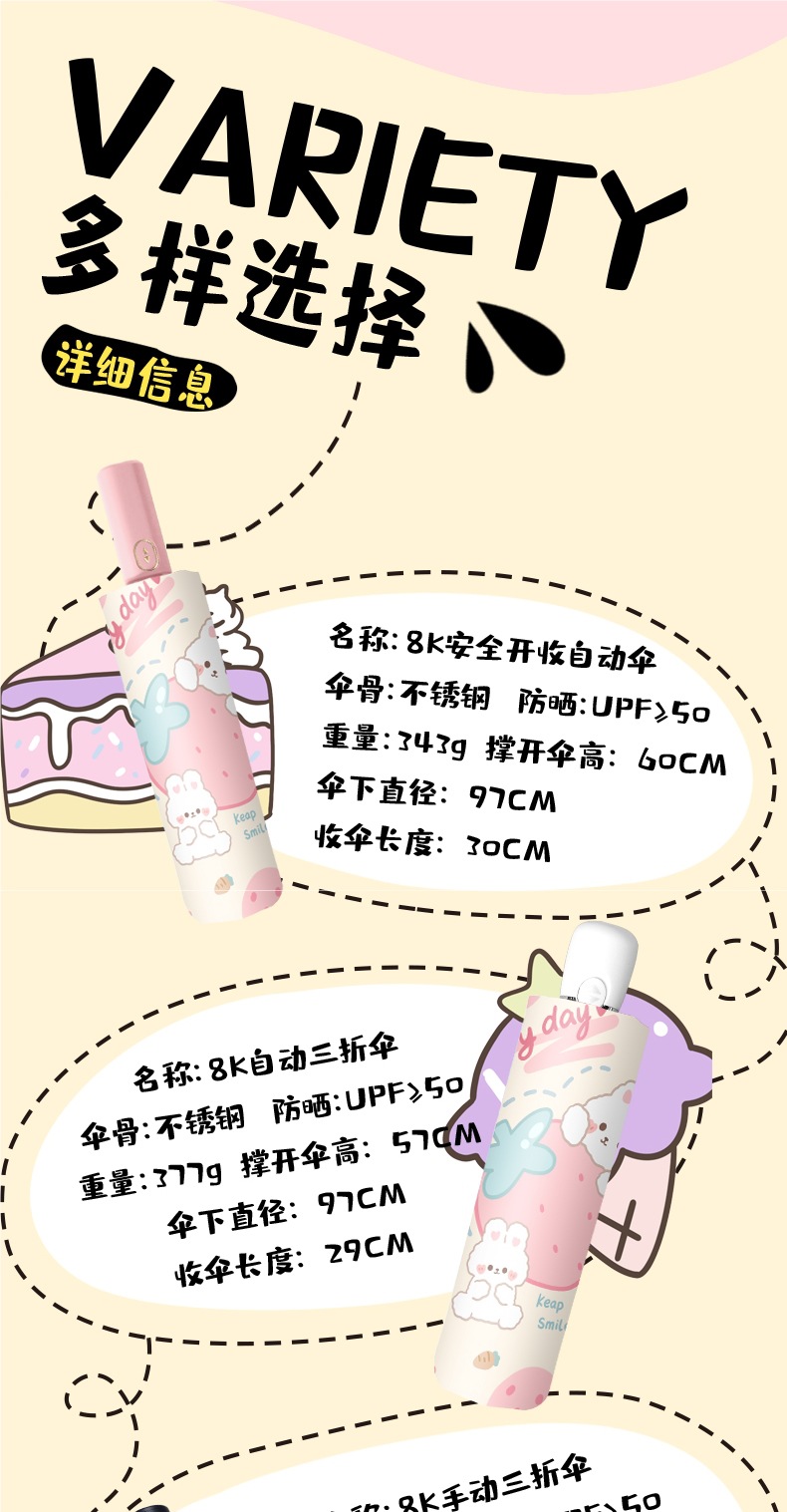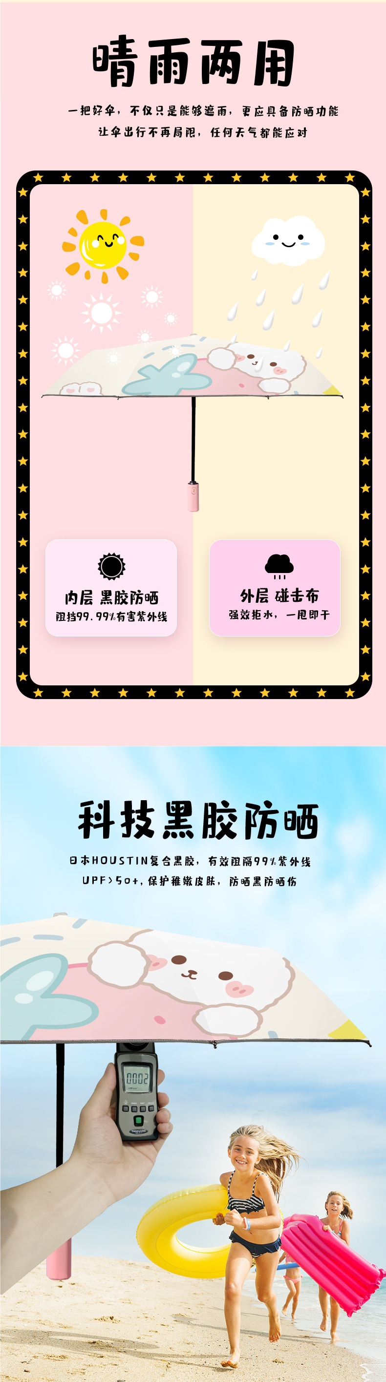 2025 새로운 딸기 토끼 안티 리바운드 어린이 태양 우산 초등학교 여자 학교 접이식 자동 우산스토어 가기