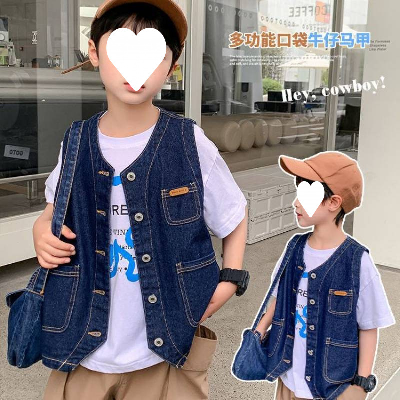 소년 여름 의류 아동 조끼 코트 봄과 가을 새로운 한국 스타일 패션 베이비 데님 조끼 어린 소년 탑 유행스토어 가기