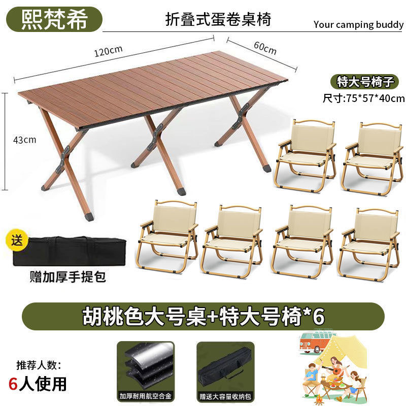 • Xifanxi+120CM 호두색 테이블+특대형 의자*6-[Xifanxi 공식 직판] 초경량 및 휴대성