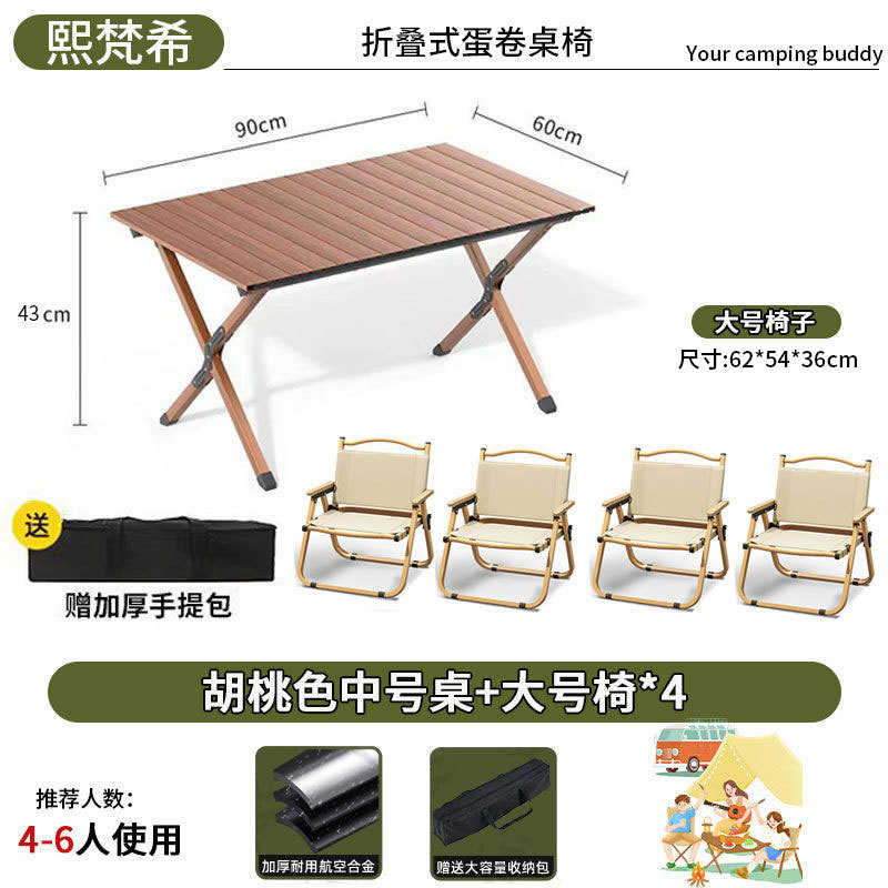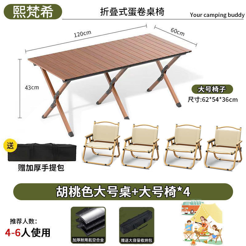 • Xifanxi+120CM 호두색 테이블+대형 의자*4-[Xifanxi 공식 직판] 초경량 및 휴대성