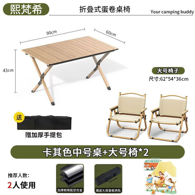 • 60cm 에그롤 테이블 + 대형 의자 2개 [기본 카키색/-[Xifanxi 공식 직판] 초경량 및 휴대성